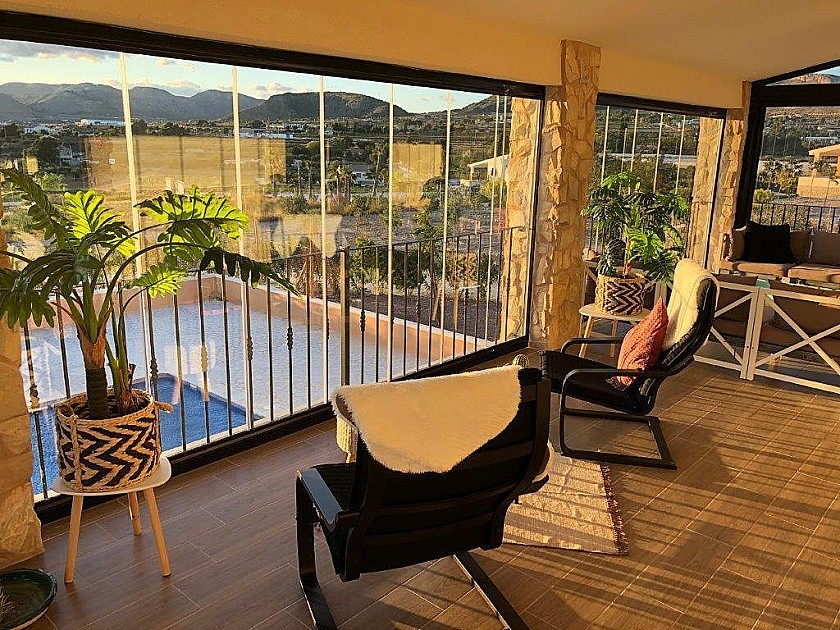 Wow-Faktor-Villa, die vor 5 Jahren gebaut wurde, aber die Villa ist in brandneuem Zustand. Dies hat sicherlich den Wow-Faktor, die Villa liegt zwischen Aspe und La Romana mit herrlichem Rundumblick, der Garten ist ein Paradies für Gärtner, das Haupthaus hat einen Sehr große Terrasse, teilweise verglast mit faltbaren Glasvorhängen, was sie perfekt für das ganze Jahr macht. Im Inneren des Hauses befindet sich eine große offene Küche mit beeindruckender Kochinsel und ein Wohnzimmer mit Kamin. Dies führt zu 3 Doppelzimmern, einem großen Familienbadezimmer und dem Master Bad und Ankleideraum, am Pool befindet sich der Eingang zum Gästehaus, das ein großes Wohnzimmer mit Küche und 2 Schlafzimmer und Badezimmer hat, es hat einen großen Laden an der Seite, Der Gartenbereich ist mit einem großen Carport zum Haus zoniert Strom und Wasser, gutes Internet, elektrische Tore, Klimaanlage und Heizung.