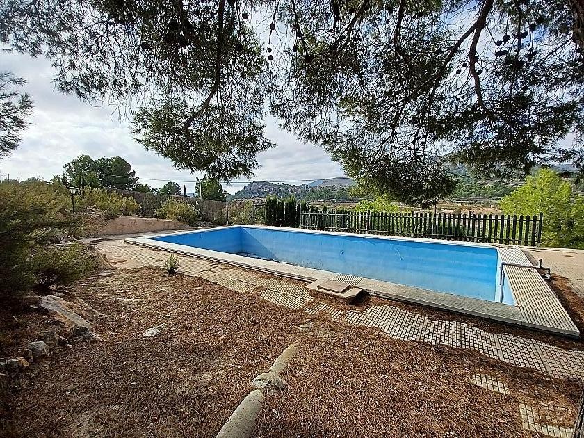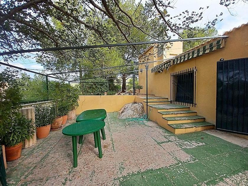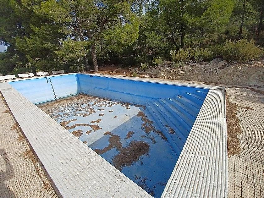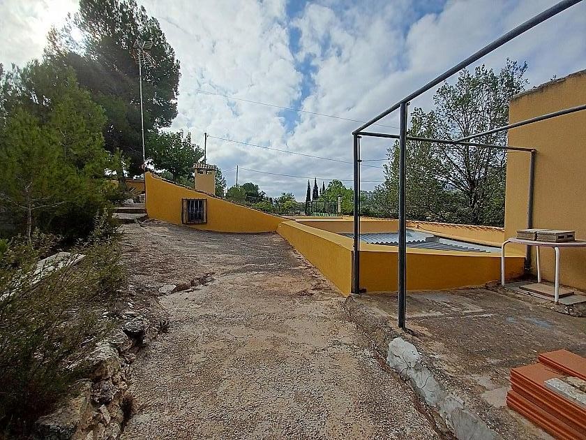 Das gesamte Grundstück ist eingezäunt und über dem Haus befindet sich ein Abstellraum und ein Weg, der zu einem großen Terrassenbereich zum Sitzen sowie zum Pool führt, der 13 x 6 m groß ist und darunter eine Pumpen- und Filterstation hat. . Die Aussicht vom Pool- und Terrassenbereich ist sehr schön.