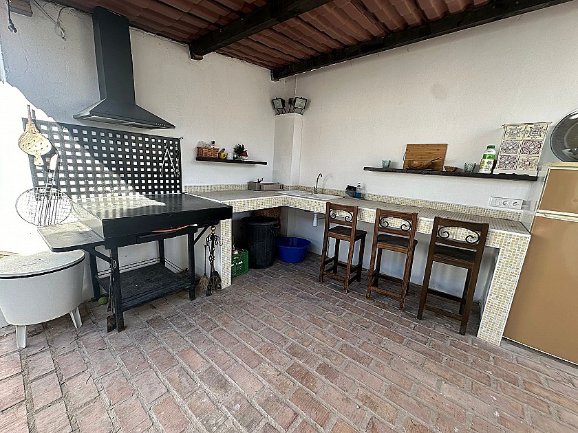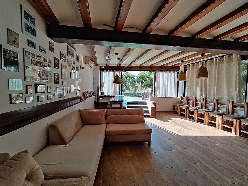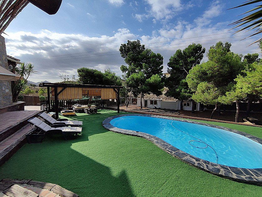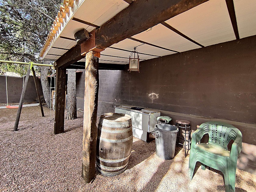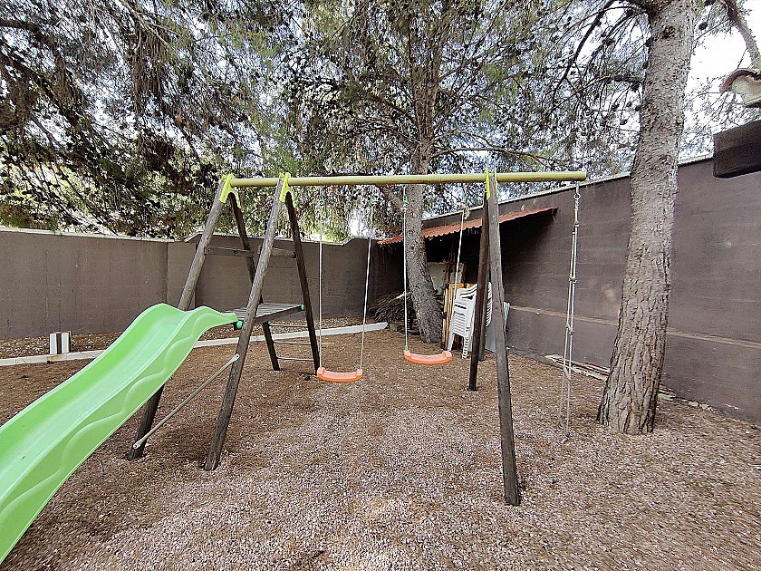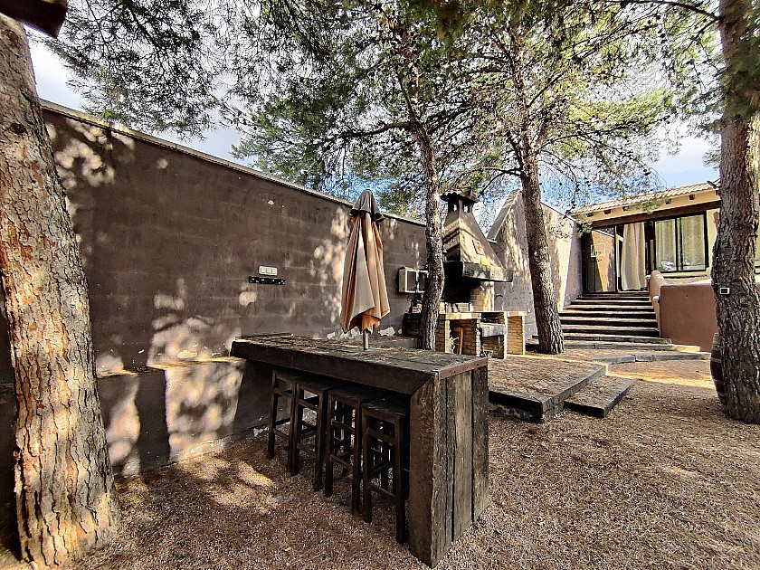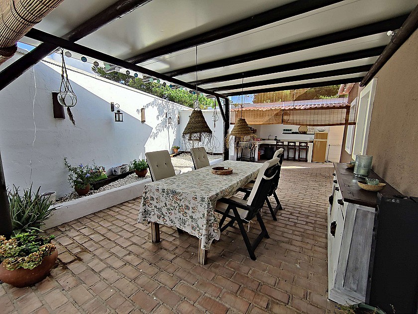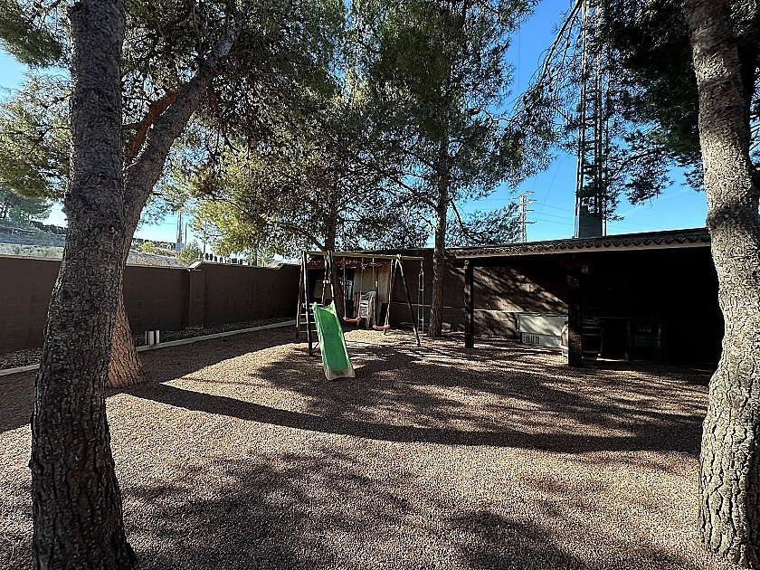 Die Grundstücksgröße beträgt 2000 m² und ist vollständig umzäunt und verfügt über eine automatische Toreinfahrt. Es gibt einen Swimmingpool, eine 45 m² große Sommerküche am Pool mit Bad, einen offenen Grillplatz, zwei Abstellräume, ein Kinderspielzimmer und verschiedene Sitzbereiche. Im Garten gibt es große Pinien, die im Sommer Schatten spenden. Komplett renovierte Villa, bezugsfertig.