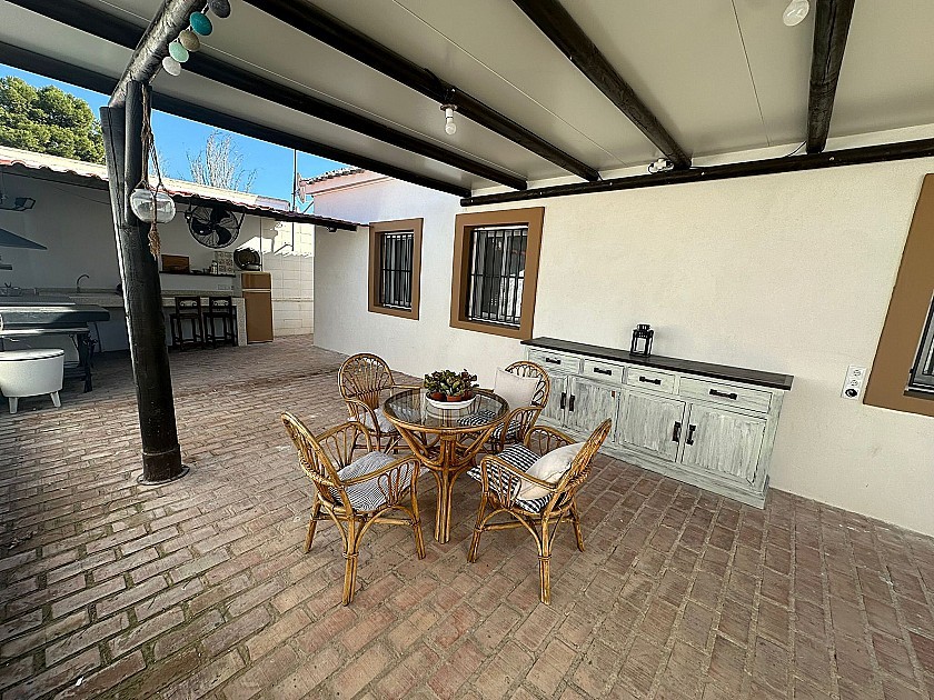 Freistehende Villa, nur wenige Gehminuten von Monovar entfernt, mit einer Größe von ca. 100 m², 3 Schlafzimmern und 1 Badezimmer, einem Wohn-/Esszimmer und einer offenen Küche.