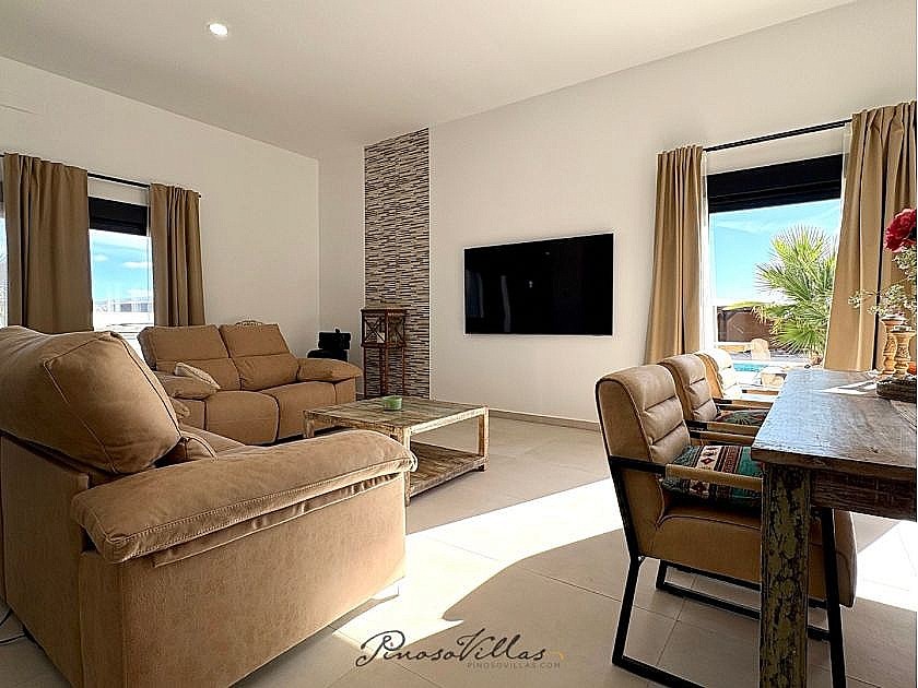 Wir freuen uns, Ihnen diese wunderschöne Villa mit 4 Schlafzimmern und 2 Bädern in Pinoso mit absolut atemberaubender Aussicht auf die umliegenden Berge präsentieren zu können. Sie verfügt über ein großes, geräumiges Wohnzimmer mit einem sehr schönen Pelletofen, eine voll ausgestattete, moderne Küche, jede Menge Außenbereich mit einer wunderschönen Terrasse mit viel Platz zum Entspannen und Genießen eines Glases Wein oder zum Essen im Schatten der Villa oder einfach zum Sitzen und Aufsaugen der herrlichen Sonne.