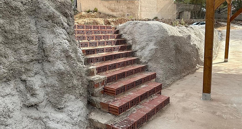 Das Anwesen verfügt auch über einen Wasserablauf, der mithilfe einer Stützmauer und einer Kanalisation nach außen gelöst ist.