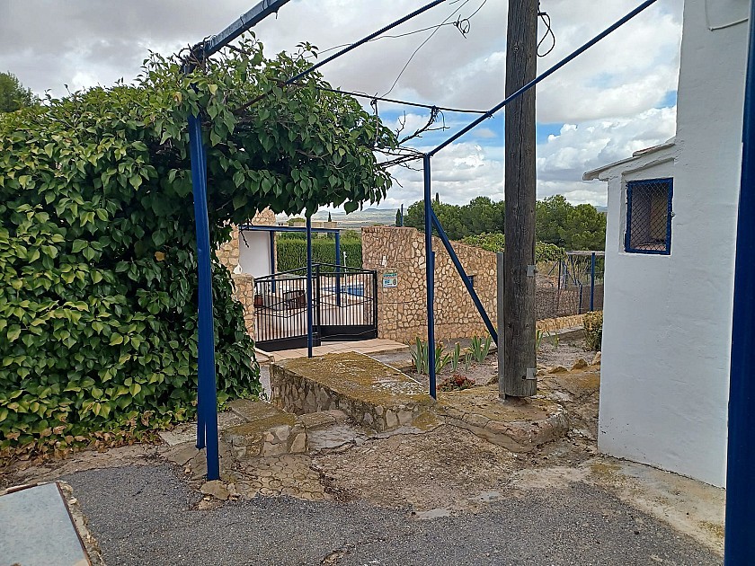 Sie betreten das Haus durch ein Doppeltor an der Vorderseite. Eine schöne, weinbewachsene Terrasse empfängt Sie mit Morgensonne. Über eine große Terrasse gelangen Sie zum 9 x 5 m großen Swimmingpool, der 2023 renoviert wurde. Der gesamte Bereich ist aus Sicherheitsgründen eingezäunt. In einem kleinen, 8 m² großen Abstellraum finden Sie Gartenstühle und die Waschmaschine. Wasser und Strom sind ebenfalls vorhanden.