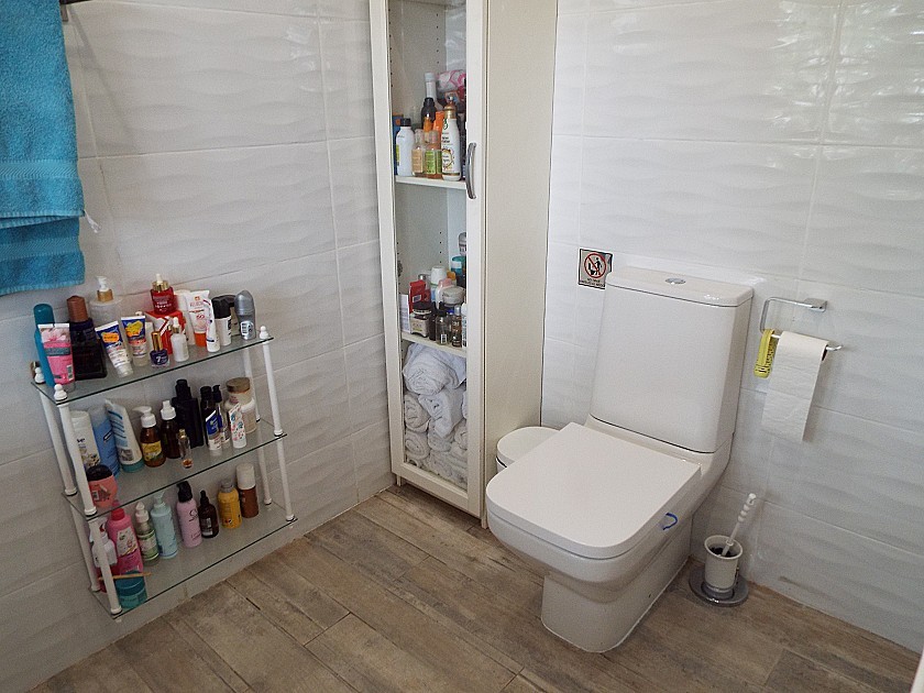 To the rear side of the house, we have another bathroom, again with walk in shower, vanity unit and W/C, and this is next to the Pool area where you will be spending much of your time.