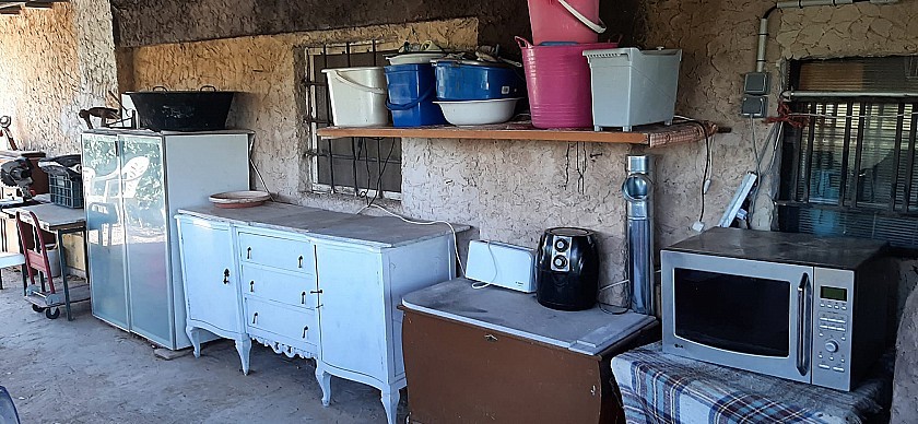 Next to the Pool area, we have a large garage construction, in total 55m2 of concrete and brick build, in here we have a second kitchen area, with a traditional bread/pizza oven, washing machine and fridge freezer and oven. There is another small storage room at the back which could be converted into another bathroom, and you would be able to make a two bedroom guest house from the remaining garage area. With running water, electric and waste, a two bedroom guest house would make a great addition to the property.