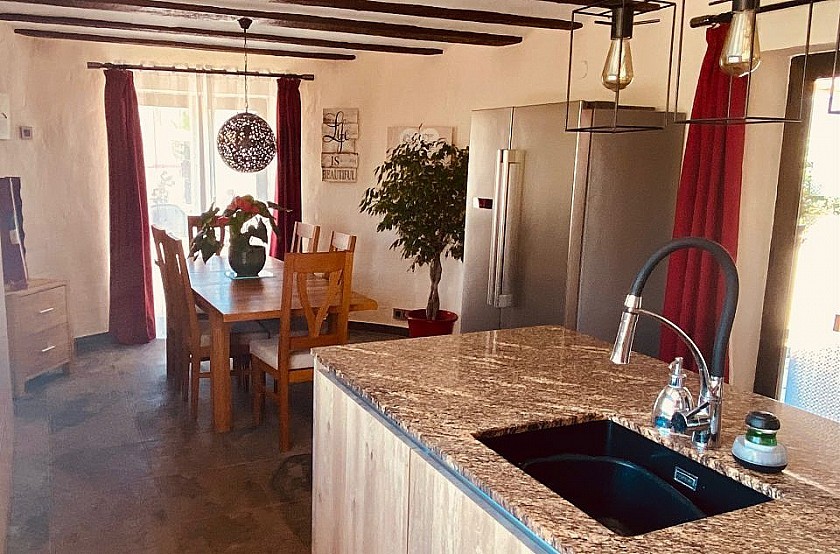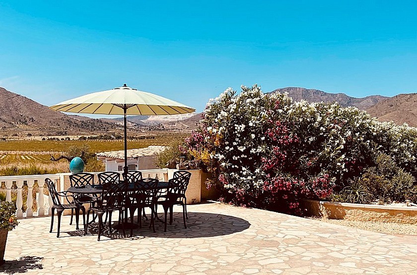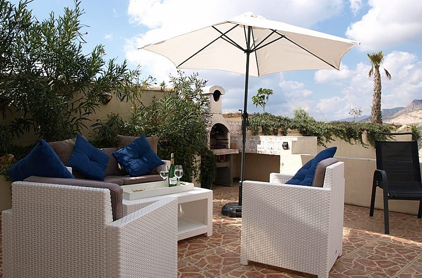 On the covered terrace of the house, you can enjoy the magnificent views and the extraordinary sunsets in our region. A small bar gives you the possibility to party with your friends.