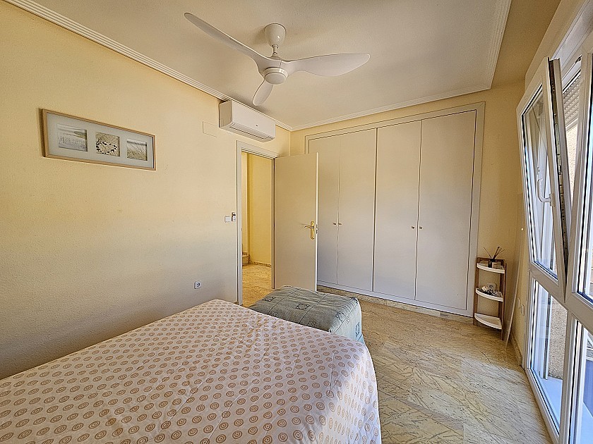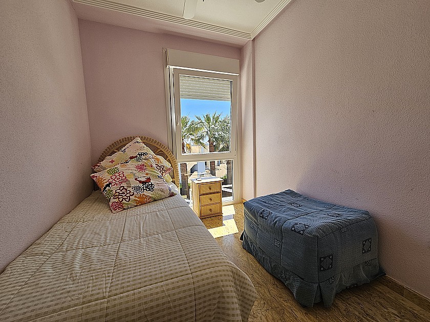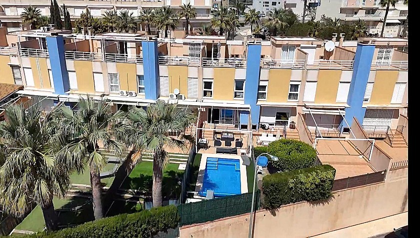 On the ground floor there is fantastic living and dining room with floor to ceiling patio doors leading outside the the tiled terrace and swimming pool which has been finished with artificial grass. On the first floor you with find the master bedroom that enjoys sea views and en-suite bathroom along with two double guest bedrooms and the family bathroom all with views towards the sea or the communal swimming pool. On the top floor you will find the fabulous solarium with more stunning views of the Mediterranean and down towards the Mar Menor.
