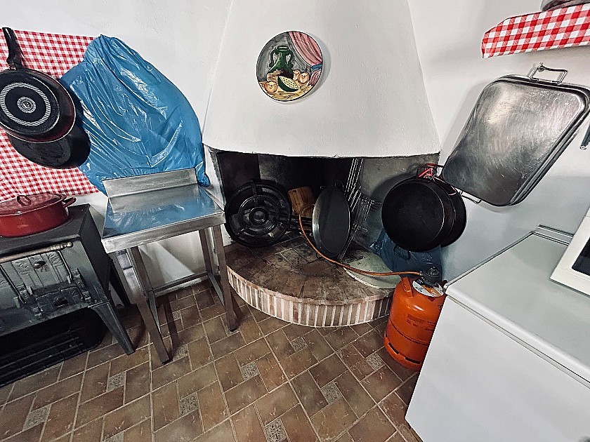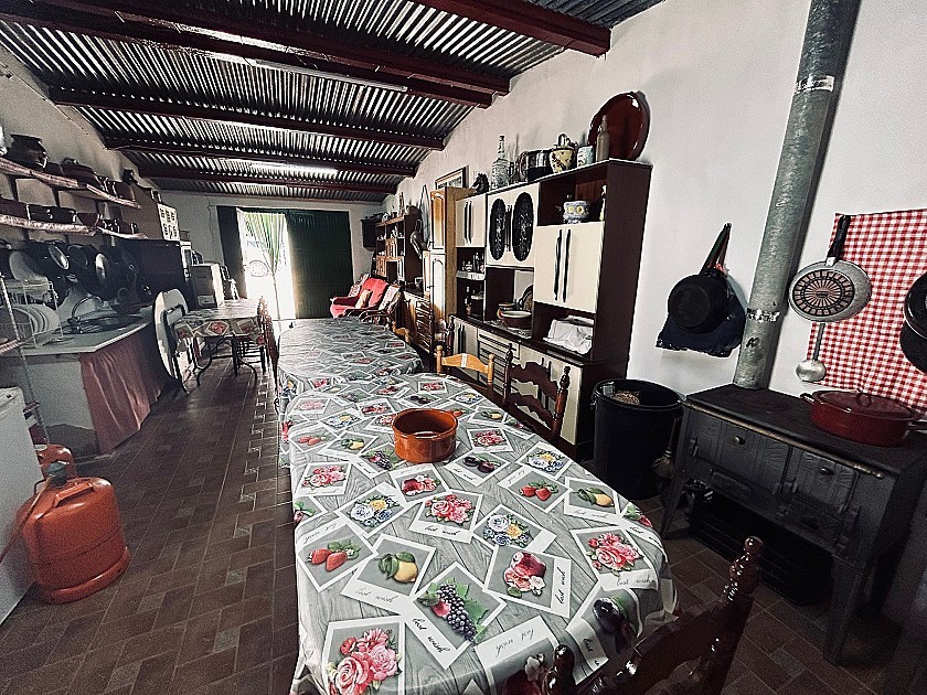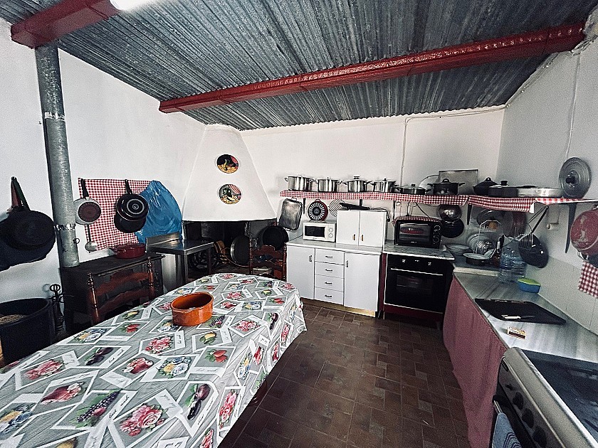 Next to the house are several outbuildings. One of these comprises a bedroom, bathroom and storage space. Another outbuilding has a kitchen and bathroom, and the third has a large living area with kitchen and open fireplace where the whole family come together on Sundays.