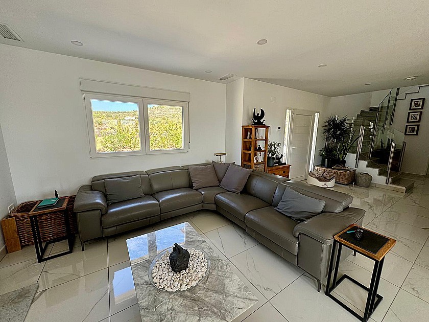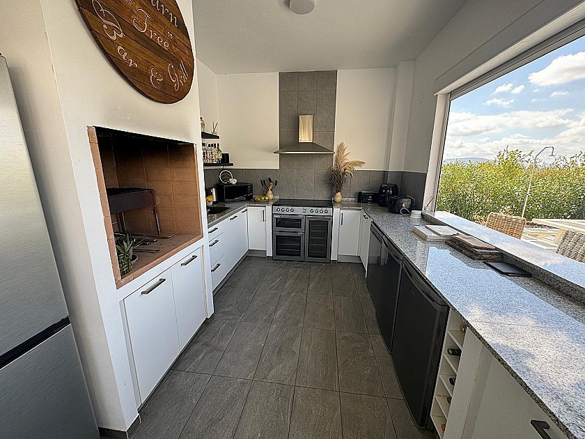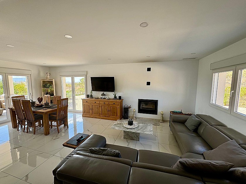 The lounge/dining area is bright and airy with plenty of windows allowing the natural light to flood in. There is an inset log burner perfect for those cooler winter evenings, the house has centralized air con and heating throughout.