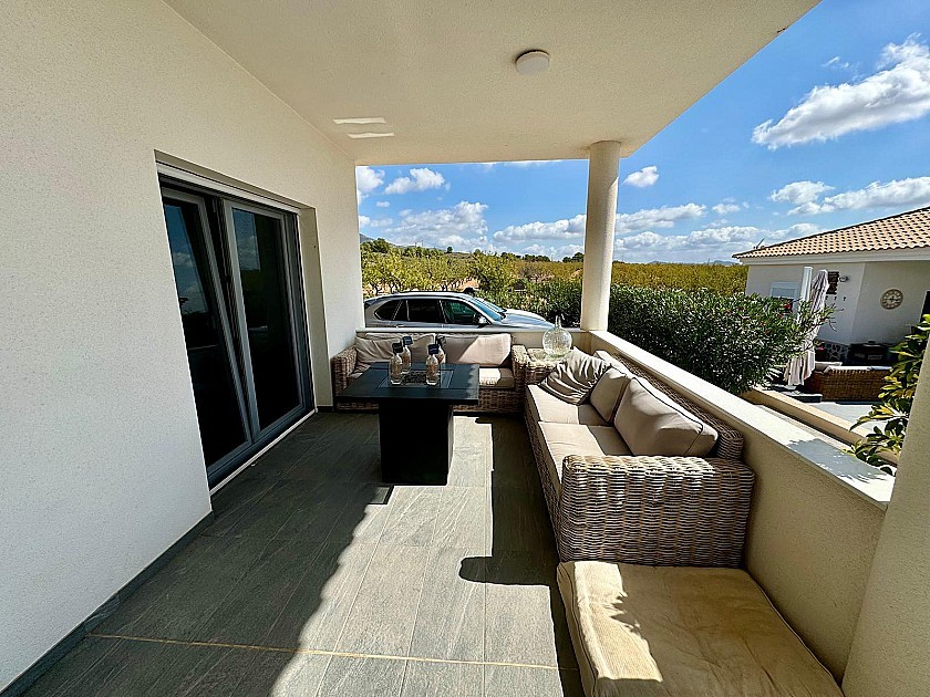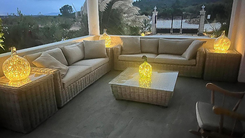 As you climb the steps at the front of the property you are met with a wonderful terrace giving you much needed shade from the summer sun, this area being perfect for alfresco dining.