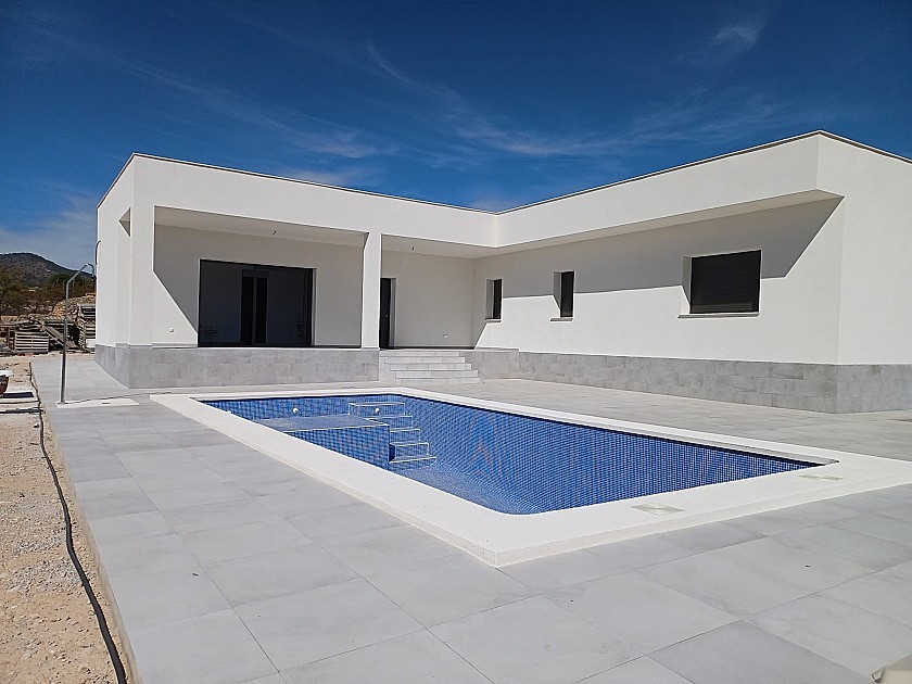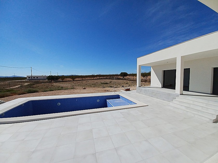 New build modern villas, all around the Pinoso area. These modern quality build villas come with an 8 x 4 pool, the plot price is included. The buyer will have the opportunity to choose the kitchen, tiles and flooring.