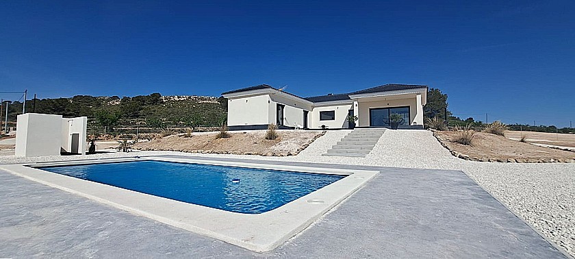 We are Pleased to present this stunning 4-bedroom 3-bathroom Villa all on one level and newly completed at the beginning of this month in the lovely area of Canada del trigo, Pinoso which is move in ready with spectacular views.