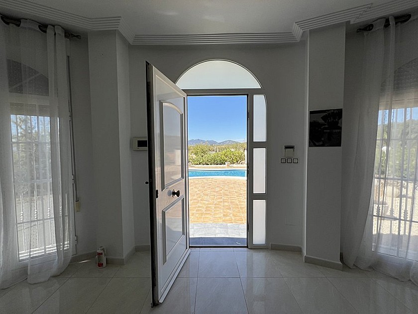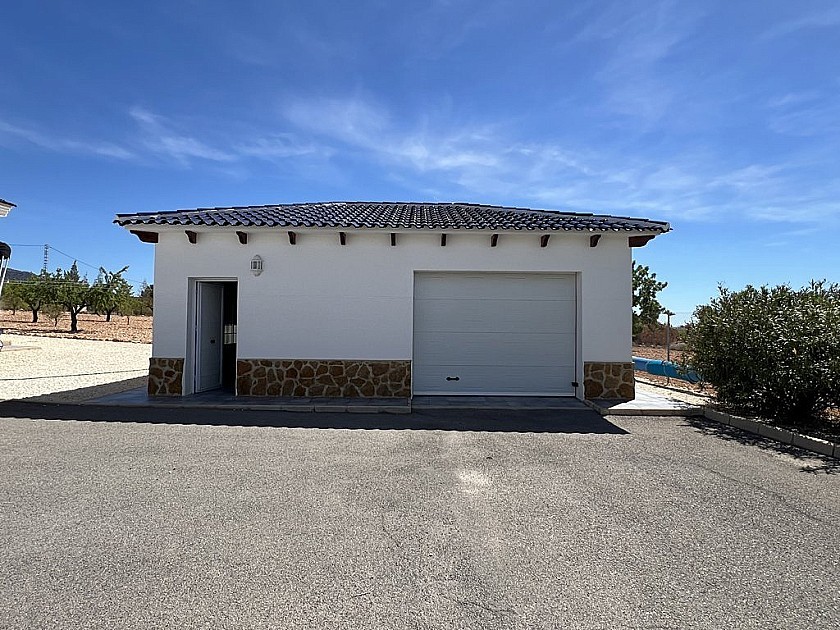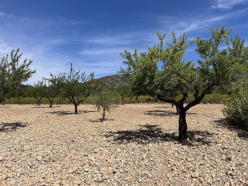 The plot is completely fenced and is accessed by an electric entrance gate with access for vehicles and pedestrian access and with a tarmac road until reaching the plot. The plot is cultivated with almond trees and there is a tarmac road from the entrance to the garage and the house. There is also a hedge surrounding the pool area and the house to give privacy.