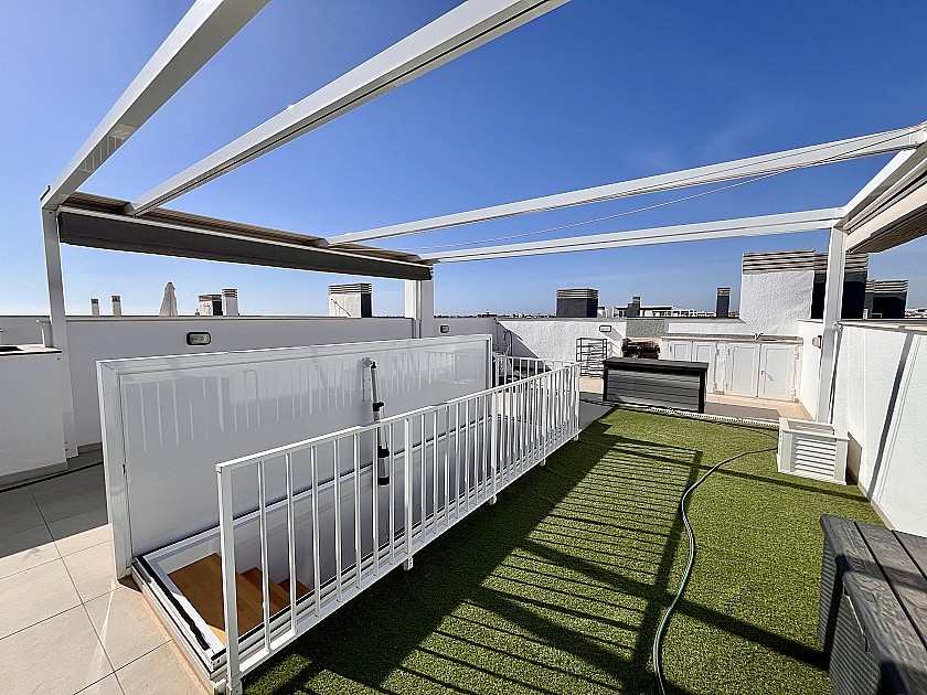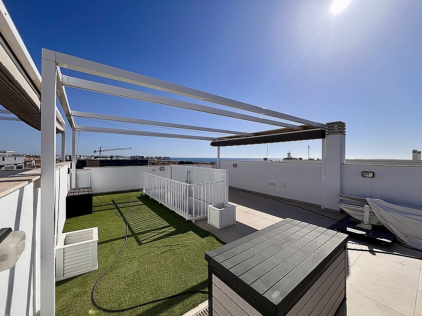 Fantastic opportunity to purchase this immaculate and well-presented key-ready 2-bedroom, 1-bathroom penthouse in Flamenca Village, Playa Flamenca.