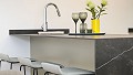 The kitchen is completed with designer furnishings and high-end appliances.