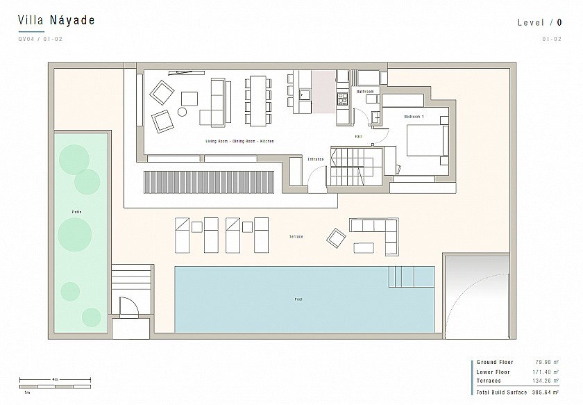 The interior of the villa exposes an elegant neutral colour scheme and excellent quality finishes creating bright and airy interiors.