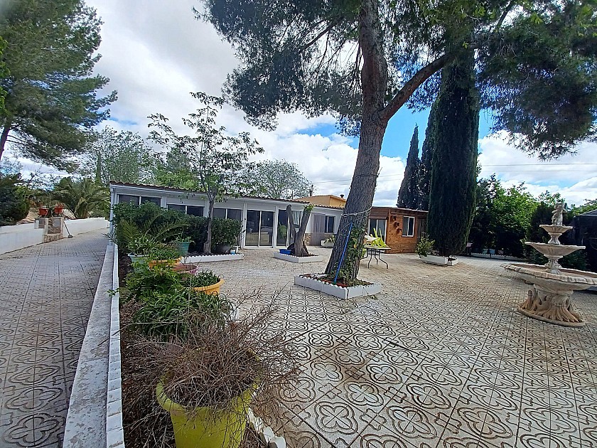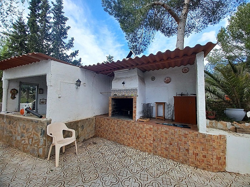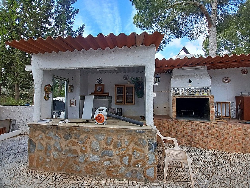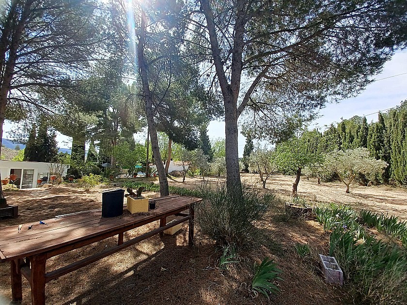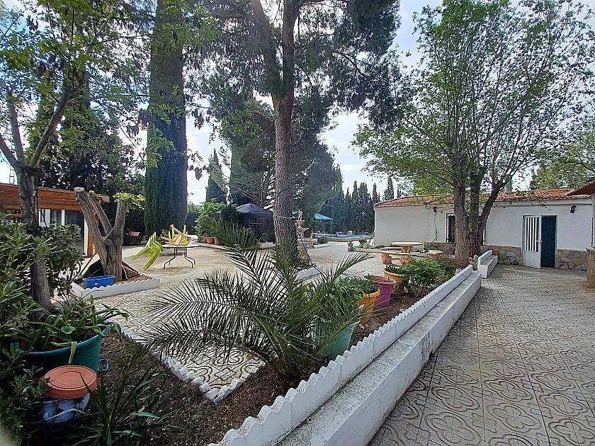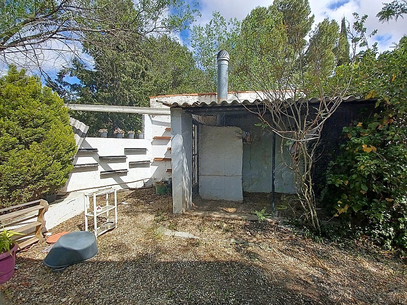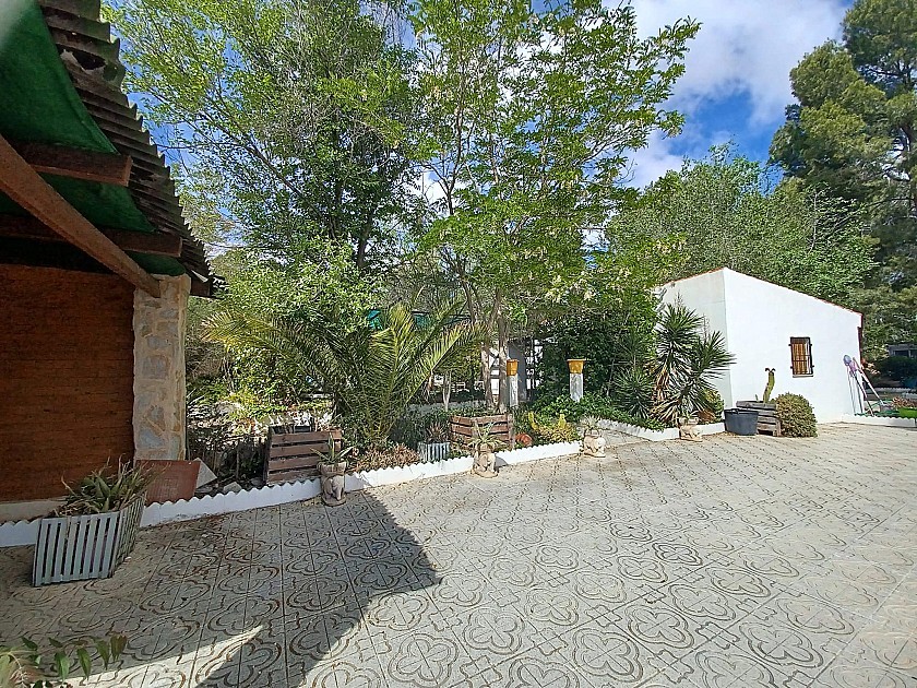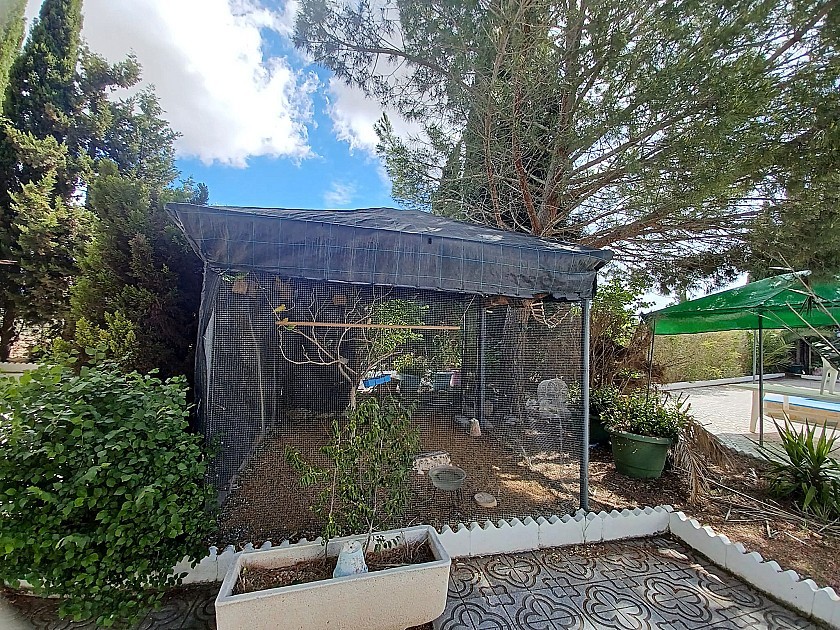You enter via a tree lined driveway to find the house surrounded by its gardens. A large terrace and an 8 x 4 m pool are located in front of the house with an outside kitchen, BBQ, small pond, aviary and casita. There are two wooden cabins in the gardens plus a third attached to the house for storage.