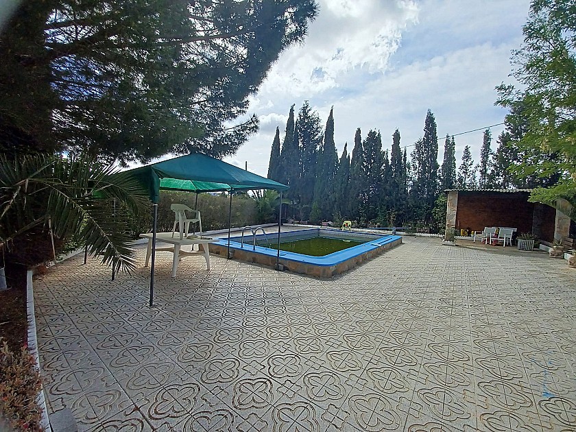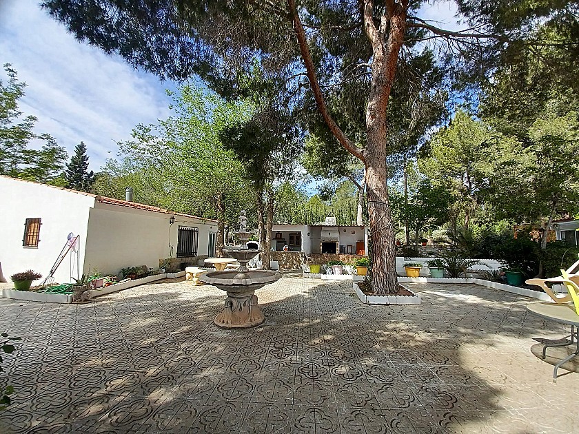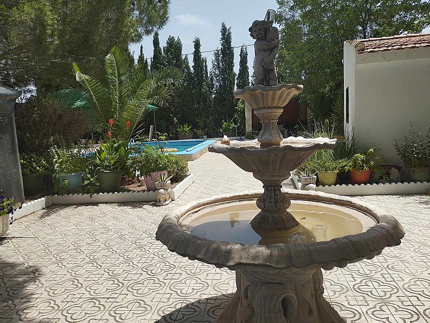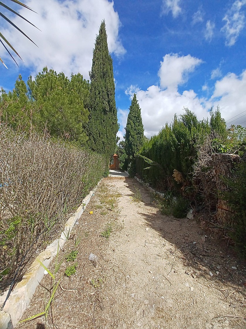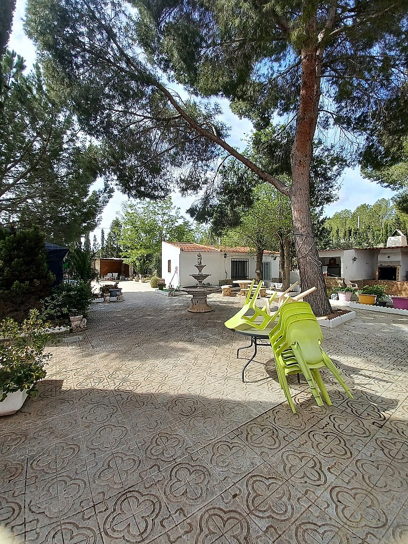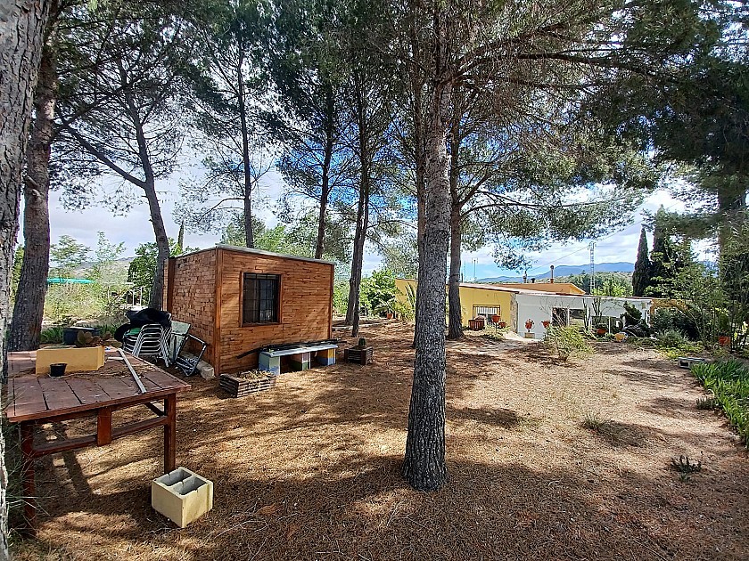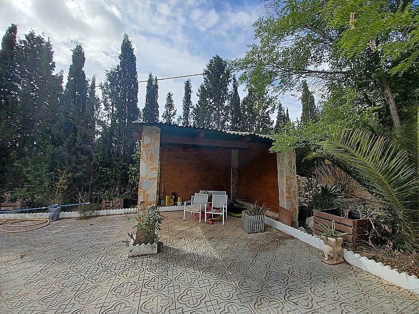 You enter via a tree lined driveway to find the house surrounded by its gardens. A large terrace and an 8 x 4 m pool are located in front of the house with an outside kitchen, BBQ, small pond, aviary and casita. There are two wooden cabins in the gardens plus a third attached to the house for storage.