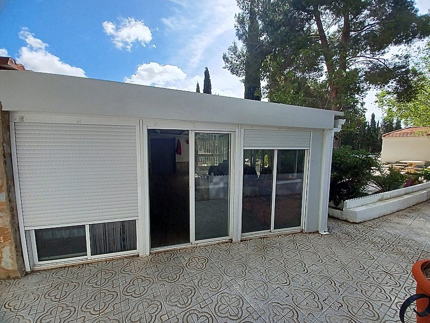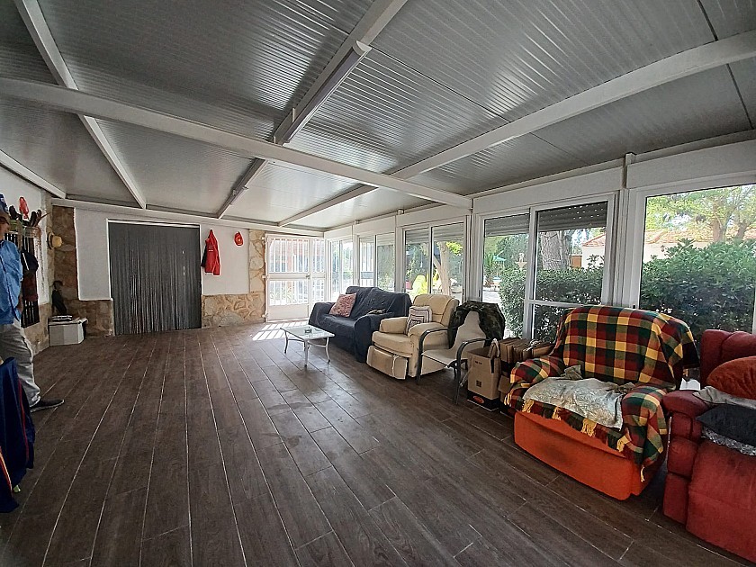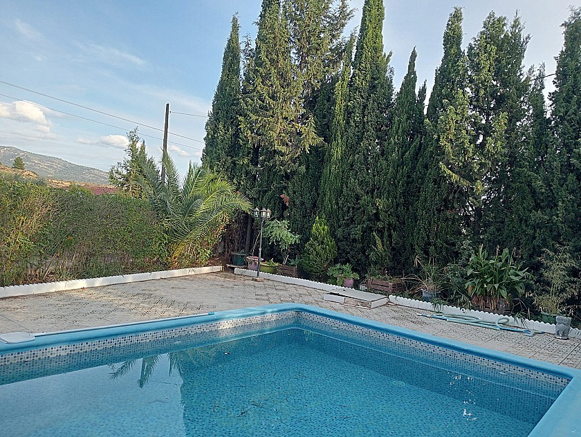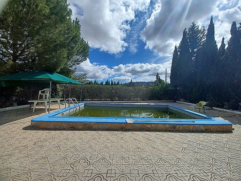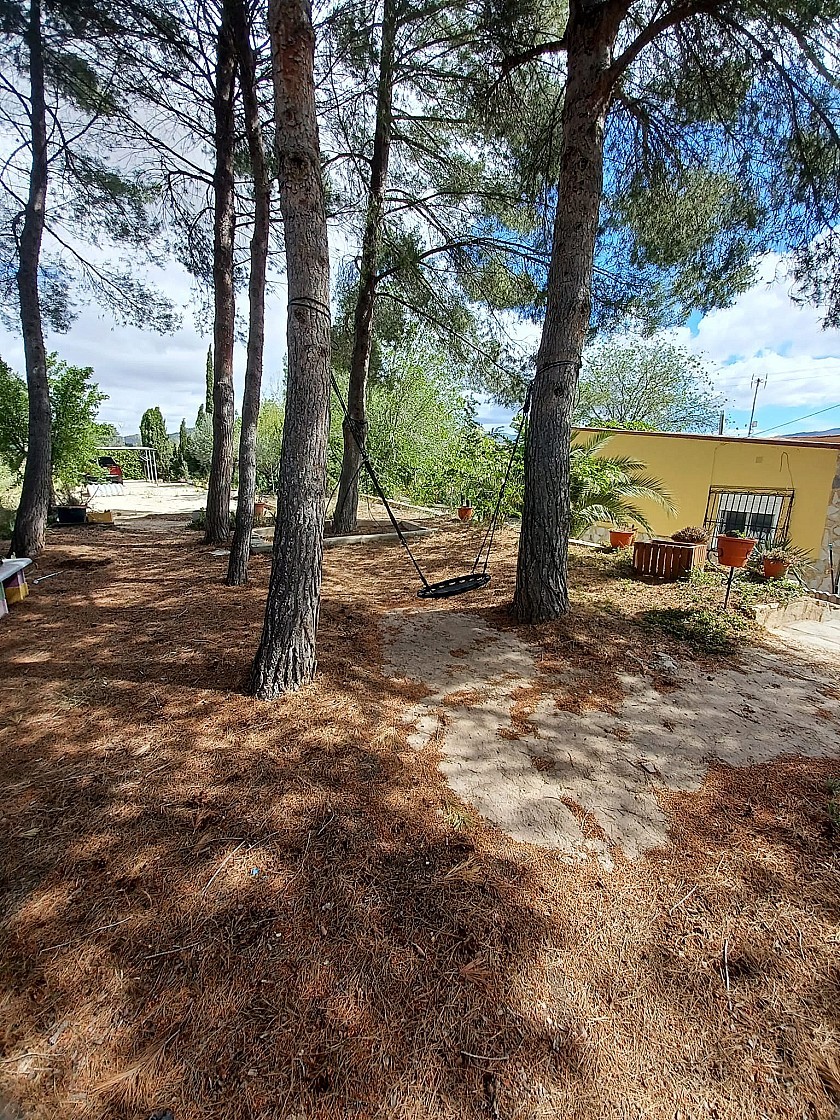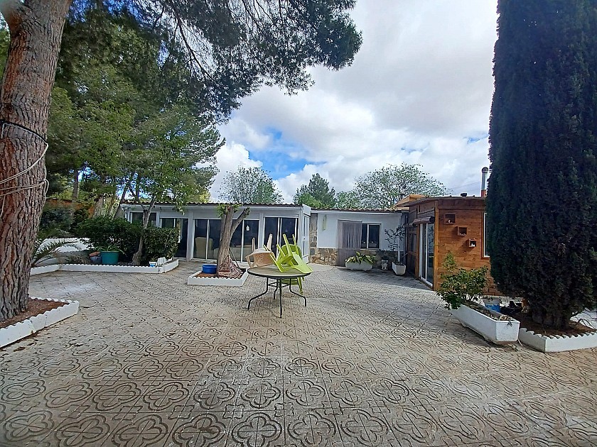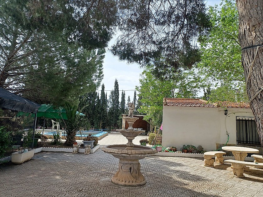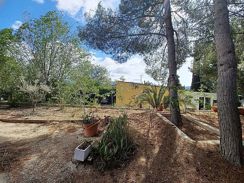 You enter via a tree lined driveway to find the house surrounded by its gardens. A large terrace and an 8 x 4 m pool are located in front of the house with an outside kitchen, BBQ, small pond, aviary and casita. There are two wooden cabins in the gardens plus a third attached to the house for storage.