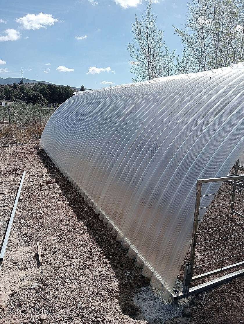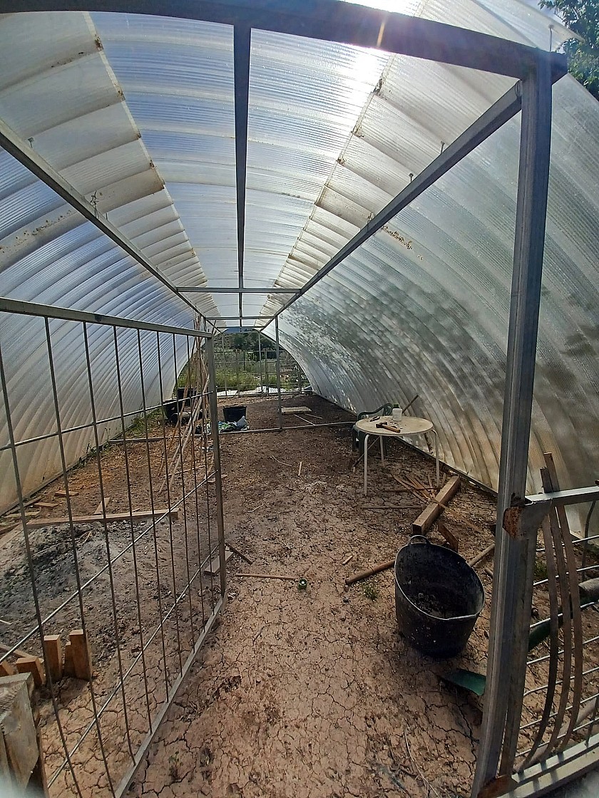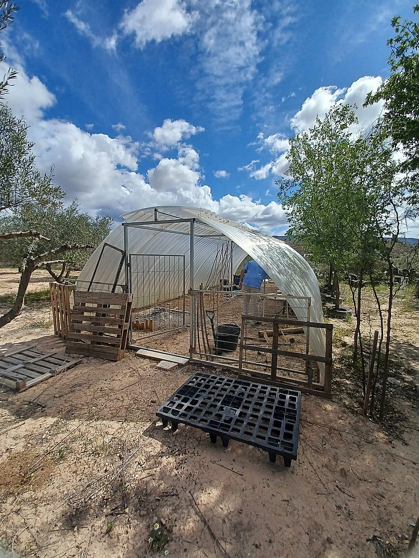 also to the bottom of the garden is an area with many animal shelters, for chickens, rabbits, ducks, goats etc and a polytunnel of 40m2 for growing vegetables.