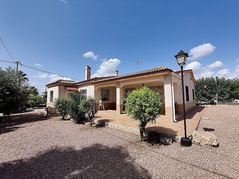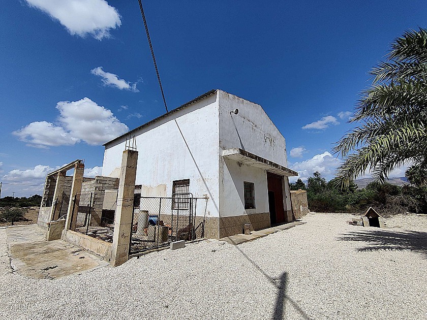 Casa de Campo Independiente cerca de Crevillente, con una parcela de 10.000m2 y un precioso jardín maduro con árboles frutales, hortalizas y palmeras. La casa tiene 3 dormitorios, salón, cocina americana, despacho, chimenea y terraza. En la planta baja hay un gran comedor/garaje abierto para eventos familiares numerosos y una sala con frigorífico que se utiliza para guardar flores (el negocio familiar). Hay una gran piscina con terraza cubierta, cocina exterior y comedor, con office y despensa. También una pequeña cancha de fútbol y otra edificación destinada a almacén y corral de animales. En la parcela también hay un gran depósito que se puede utilizar para regar las plantas. Hay luz y agua de red. Situada a 5 minutos en coche de las localidades de Crevillente y Albatera.