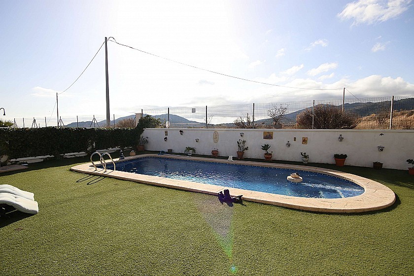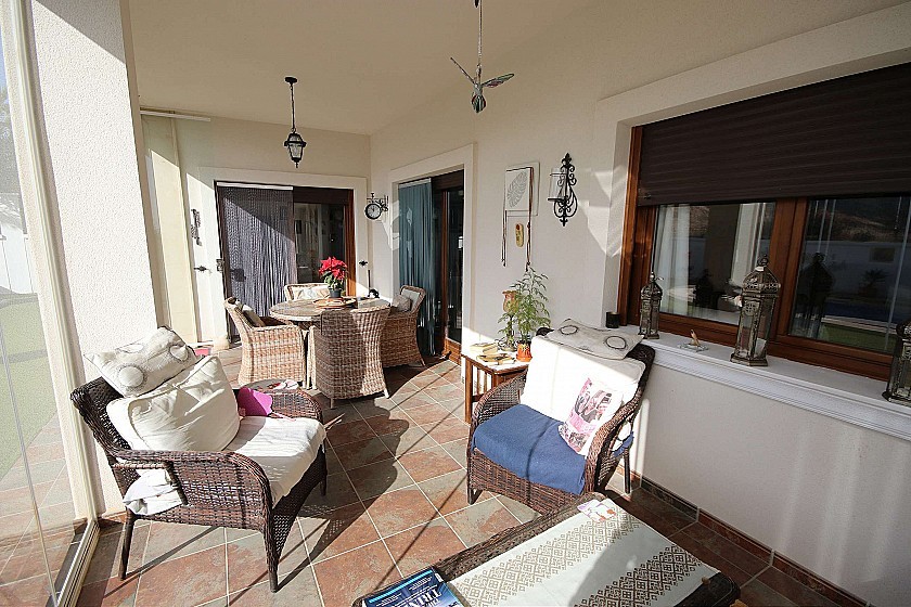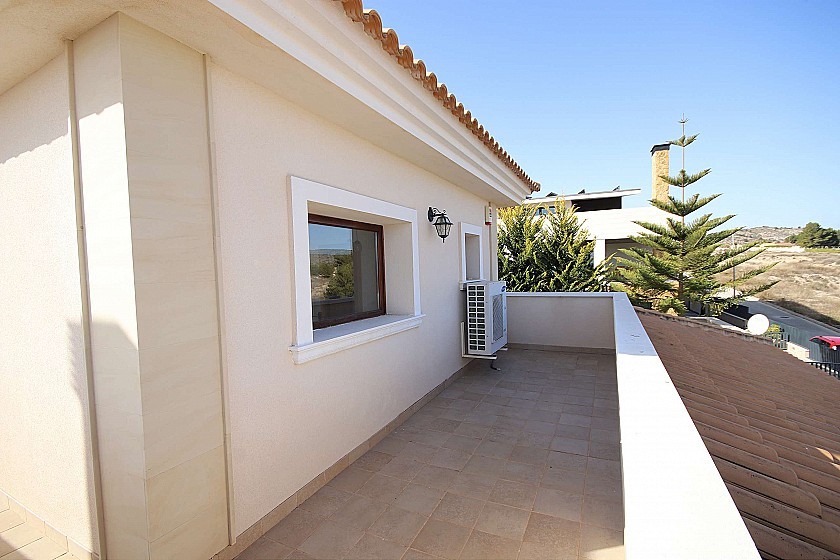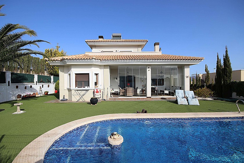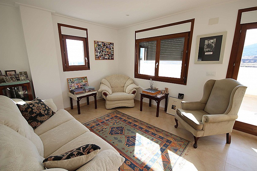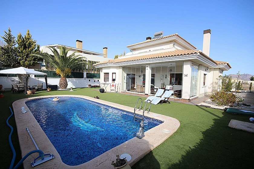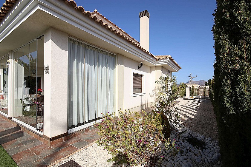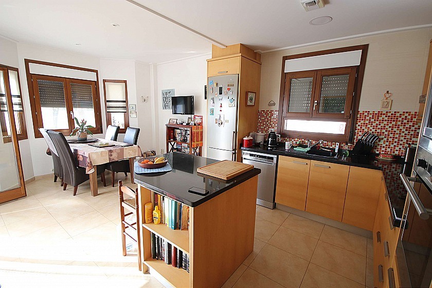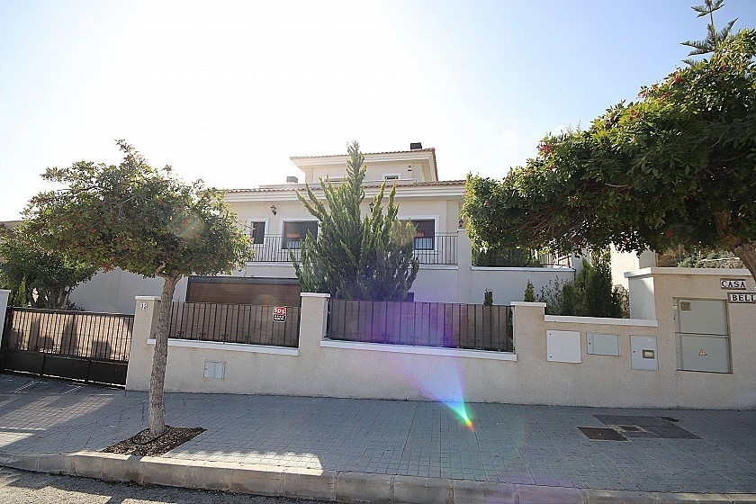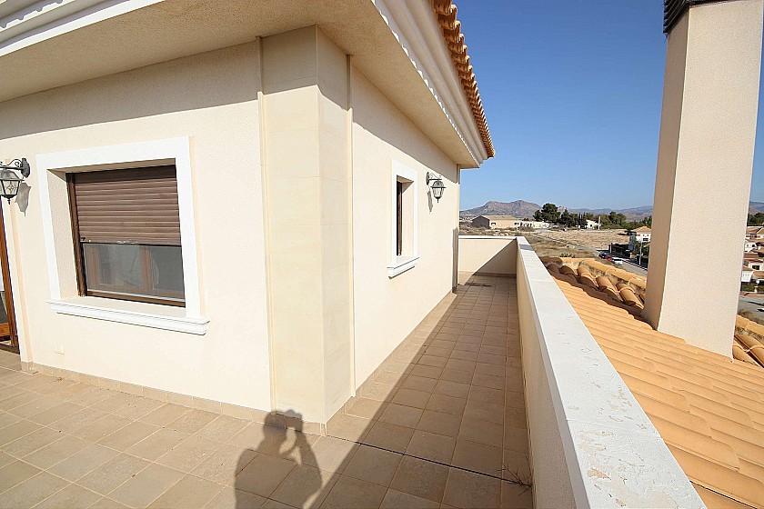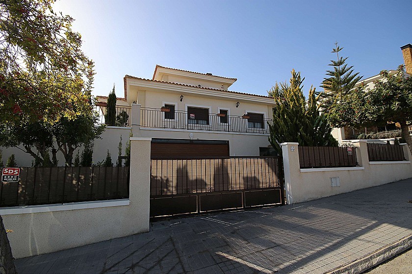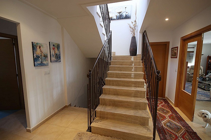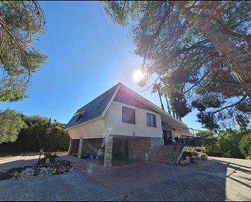 Precioso Chalet Independiente en Monovar, en la urbanización residencial de EcoCiudad, a poca distancia del pueblo, que cuenta con numerosos bares, restaurantes, supermercados, piscina cubierta y complejo de gimnasio, colegios y todos los servicios necesarios. La casa tiene 3 dormitorios en la planta baja y otro en la planta superior, actualmente utilizado como oficina/salón, que da a una gran terraza en forma de U alrededor de la casa, con excelentes vistas. También hay 3 baños, salón-comedor, cocina con despensa, calefacción central de gas, agua caliente solar, estufa de leña, aire acondicionado por conductos y ventanas de doble acristalamiento. El sótano es un amplio garaje y un trastero. La propiedad está amurallada alrededor, con árboles maduros y una piscina con escalones.