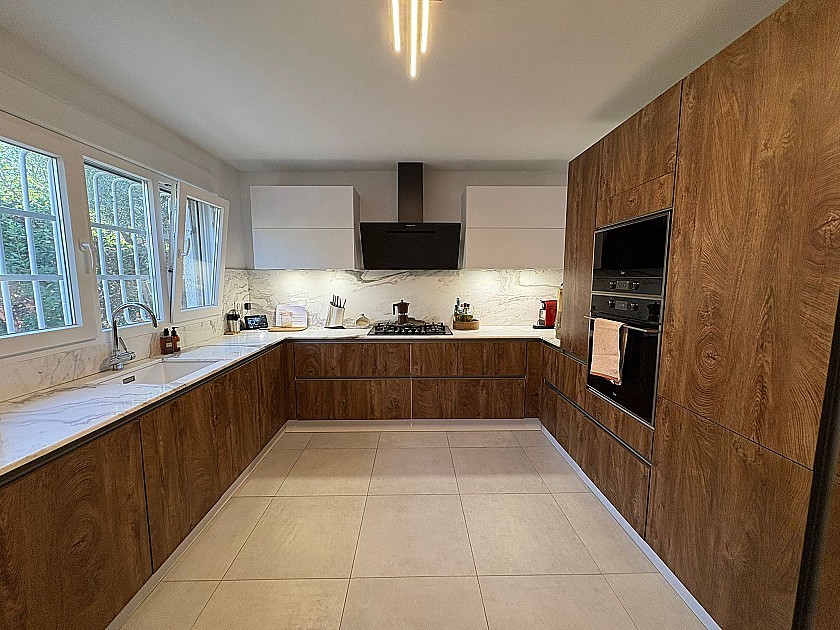 La villa cuenta con una casa de invitados completamente equipada en el sótano de la planta baja, que ofrece mayor privacidad para los visitantes. Esta suite de invitados incluye su propia cocina, sala de estar, un dormitorio y un baño, lo que la convierte en un espacio perfecto para estadías prolongadas.
