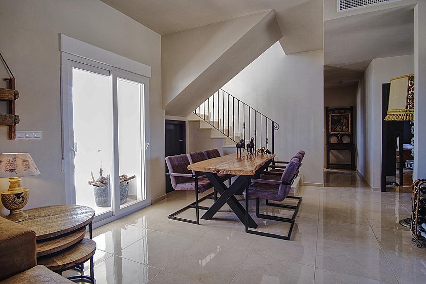 El amplio salón ofrece un ambiente cálido y acogedor, con un precioso techo alto y una hermosa chimenea de leña, un espacio ideal para relajarse y disfrutar. La amplia cocina, totalmente equipada, también es perfecta para el entretenimiento. Desde el salón, una escalera de mármol con barandilla de hierro ornamentada le da un toque elegante, y conduce a los 4 espaciosos dormitorios con armarios empotrados, todos bellamente decorados, uno de ellos con vestidor que ofrece mucho espacio de almacenamiento. Además, hay un gran balcón que da acceso a dos de los dormitorios con impresionantes vistas a las montañas. Hay 3 baños funcionales, también con una presentación impecable, y aire acondicionado frío/calor con control independiente en la planta superior e inferior.