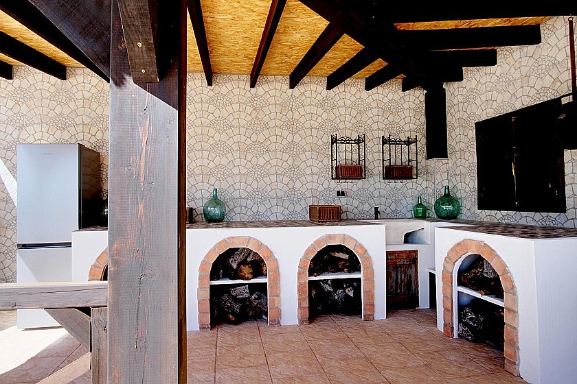 Dispone de una maravillosa zona de barbacoa con fogón y asientos para disfrutar todo el año, y una magnífica cocina exterior. También dispone de una fabulosa piscina de 10x5 m, climatizada, ideal para nadar todo el año, y un amplio baño exterior con ducha.