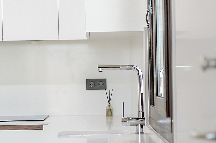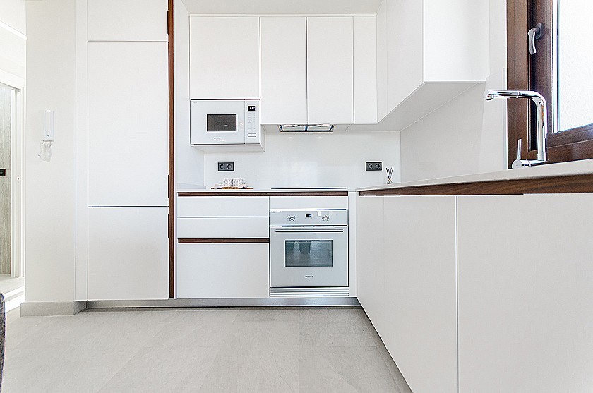 Las cocinas se entregan totalmente amuebladas con todos los muebles altos y bajos.