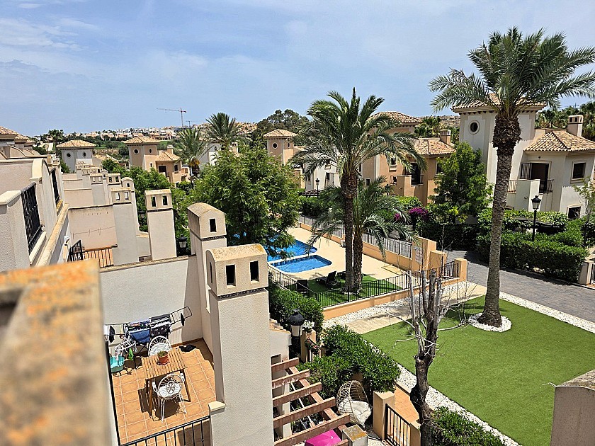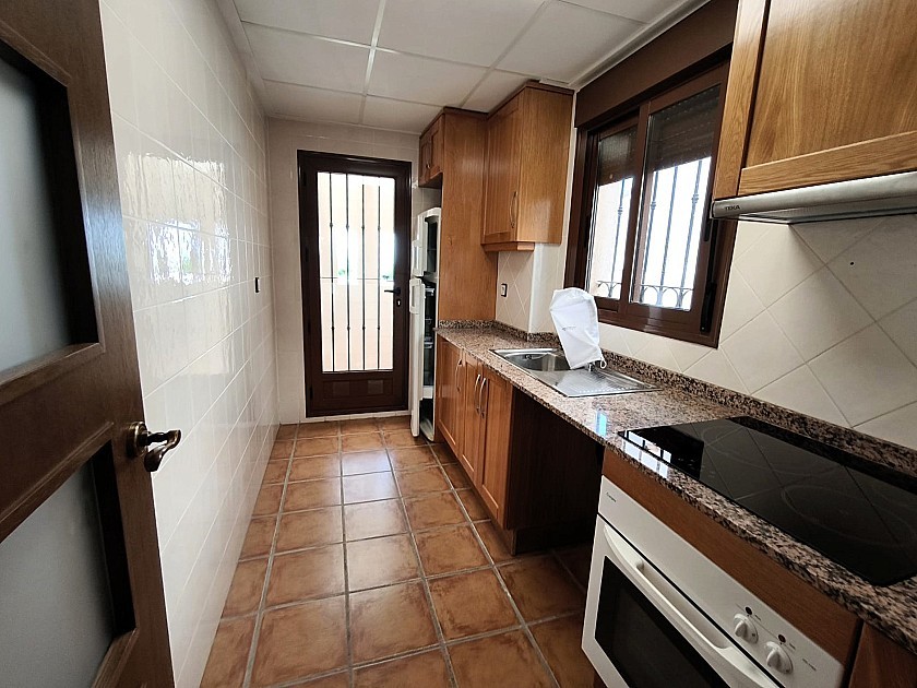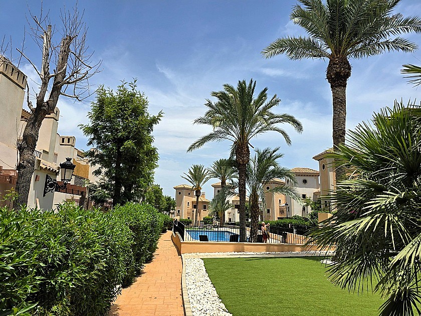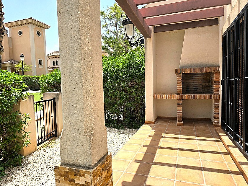 Charmant bungalow mitoyen situé dans le complexe résidentiel prisé de Paradise Golf. La propriété bénéficie d'un jardin privatif avec parking à l'entrée et d'une terrasse arrière avec barbecue intégré, idéale pour les repas en plein air et la détente.
