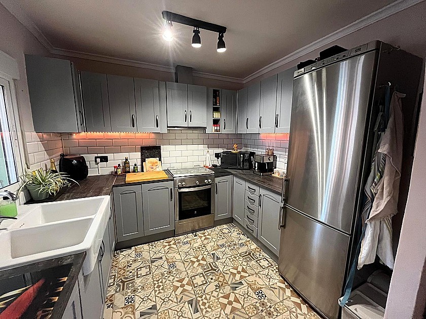 Une cuisine moderne entièrement équipée avec des finitions haut de gamme
