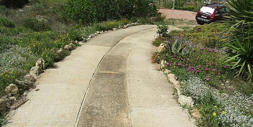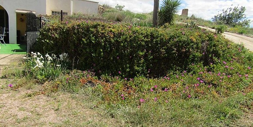 Vous entrez dans la propriété par une entrée d'allée où vous trouverez la grotte cachée. Il y a une terrasse couverte et un petit jardin clos à l'avant. La grotte est située sur un terrain d'env. Terrain de 1000m2.