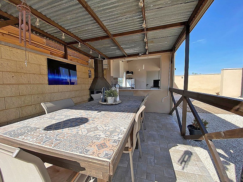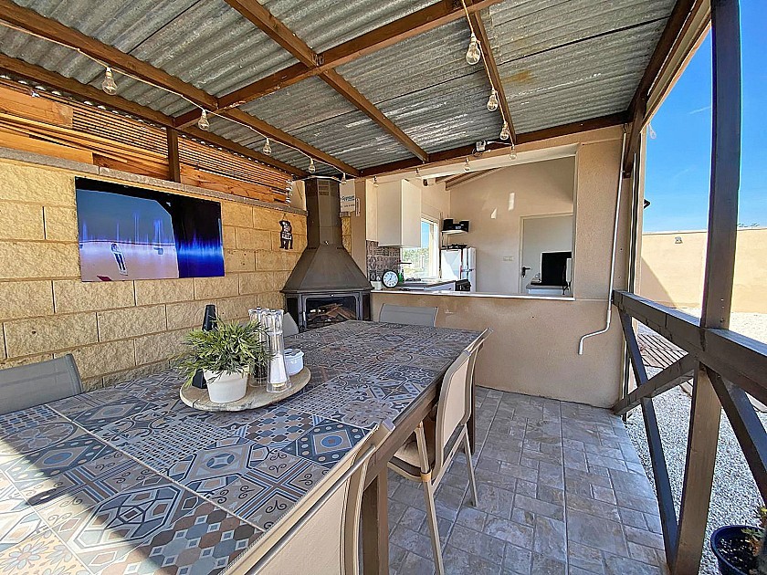 Il y a une cuisine extérieure avec des équipements de cuisson au gaz. L'espace extérieur est parfait pour recevoir la famille et les amis, les repas en plein air sont un must.