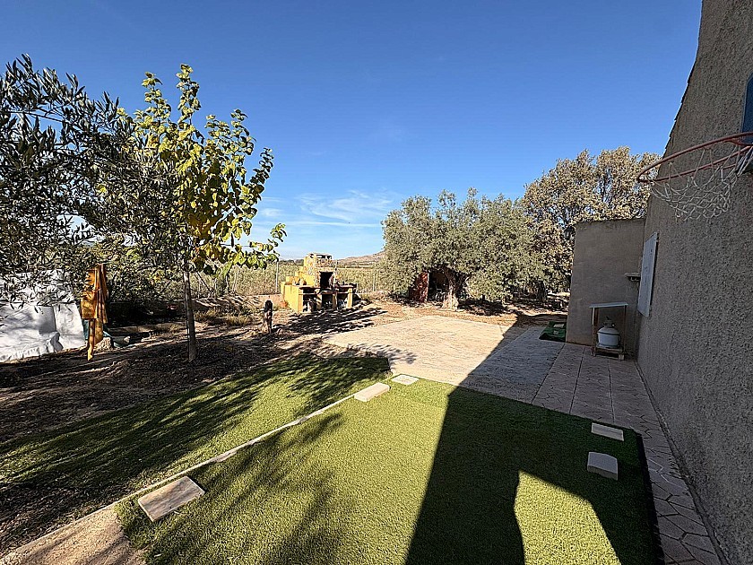 Le terrain est agrémenté d’un oliveraie, de vignes, et d’un figuier, créant une atmosphère méditerranéenne paisible. Vous trouverez également un espace barbecue et une cuisine d’été, parfaits pour recevoir famille et amis.
