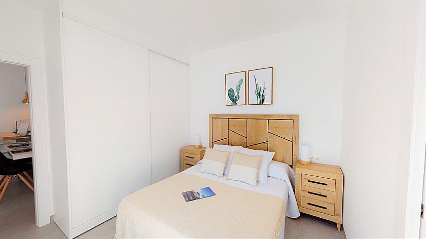 La menuiserie intérieure sera finie en blanc, avec du matériel et des poignées chromées, des armoires modulaires intégrées, habillées à l'intérieur de tiroirs, finies en blanc.