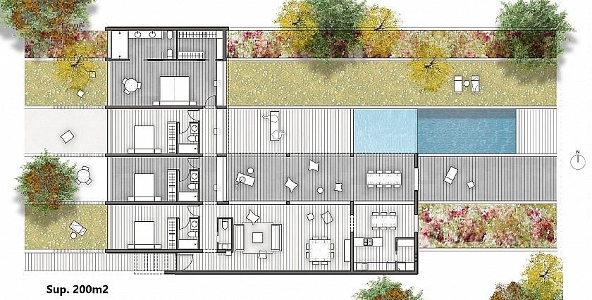 Nous sommes fiers d'offrir ces maisons neuves, qui peuvent être personnalisées (bien que les plans d'étage soient inclus dans une disposition standard ci-dessous). Nous proposons 3 tailles différentes, de 139m2 à 222m2, et sommes fournis avec tous les papiers et garanties inclus.