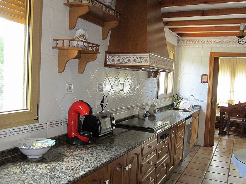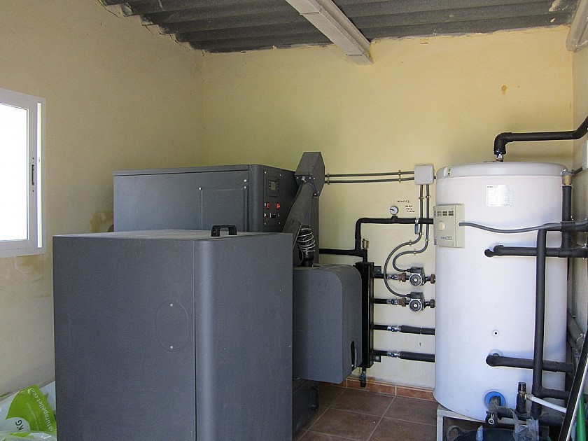 À l'extérieur, sur le grand terrain, il y a une terrasse, une piscine, un abri pour 2 ou 3 voitures, un barbecue, un garage et plusieurs espaces pour s'asseoir et profiter de la vue et de la campagne.