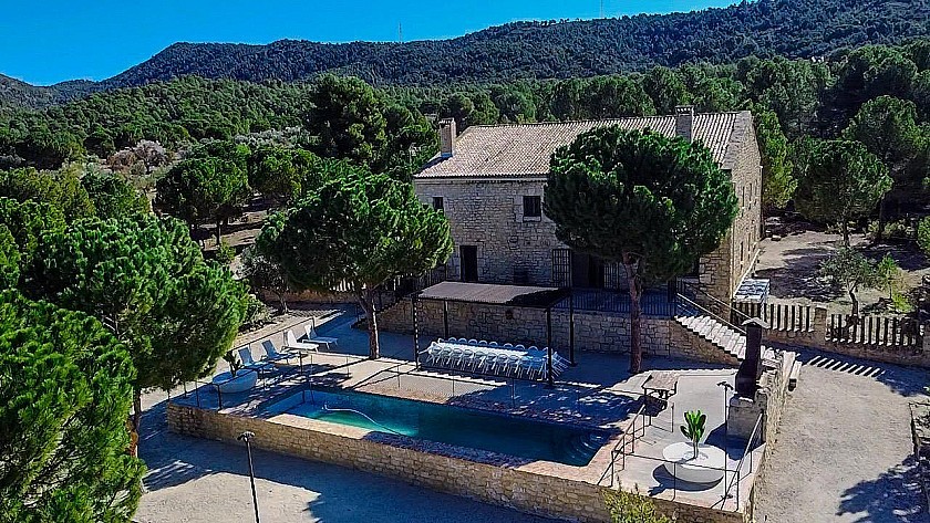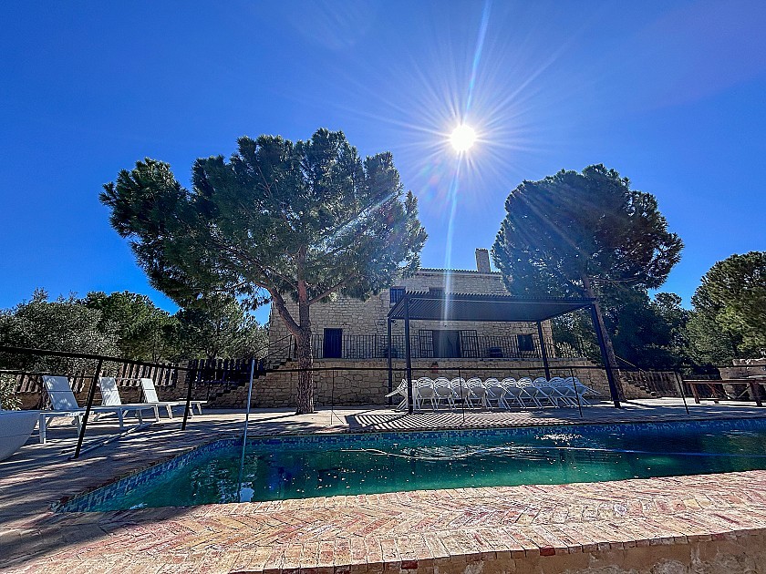 Als u het terrein van Finca la Llum betreedt, wordt u meteen betoverd door de aanblik van een prachtig zwembad, dat u uitnodigt om te genieten van momenten van ontspanning en rust onder de warme Spaanse zon. Het zwembadgedeelte is omgeven door weelderig groen en biedt een serene oase waar gasten kunnen ontspannen en verjongen.