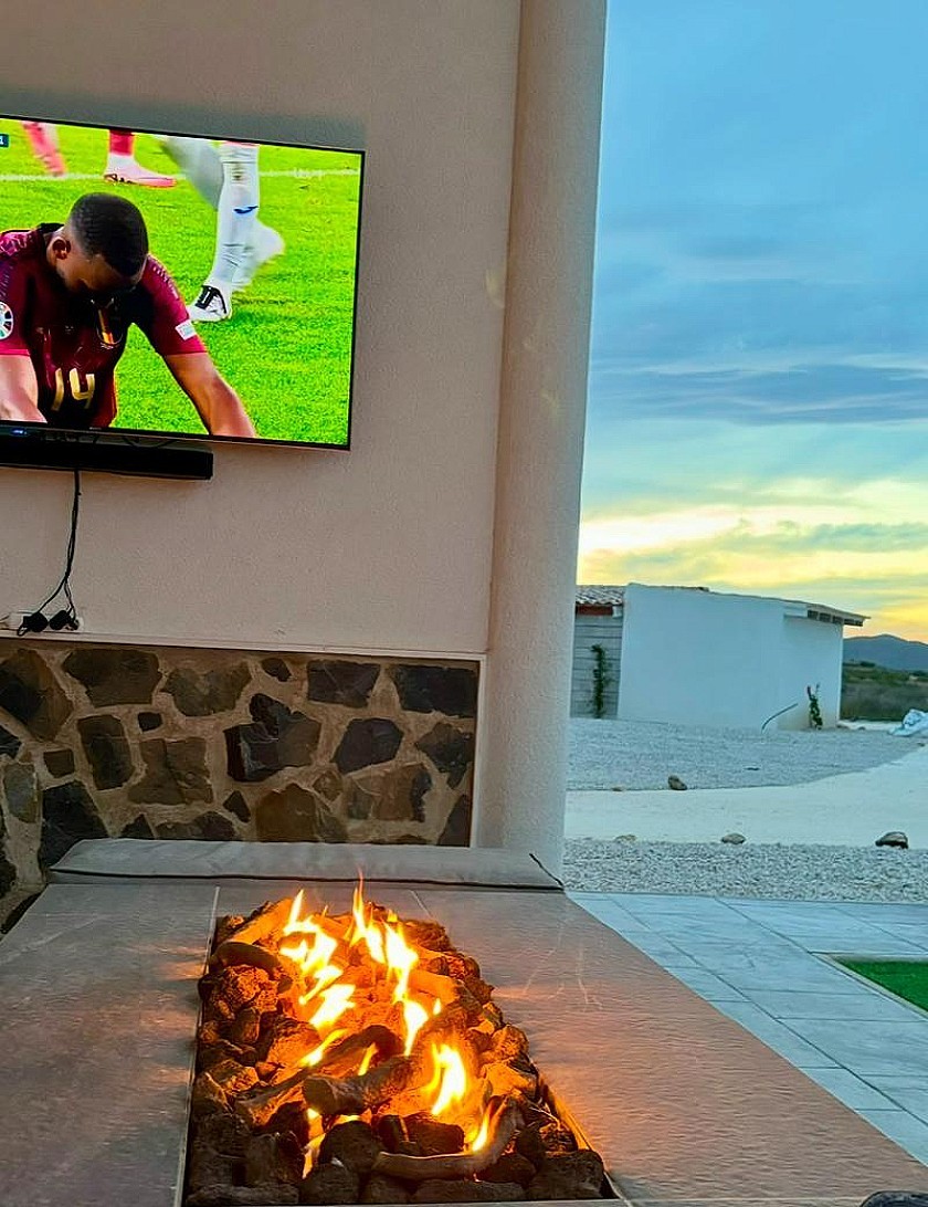 Of het nu zomer of winter is, deze villa biedt een uitstekend binnenklimaat dankzij een volledig airconditioningsysteem (boven en beneden). Daarnaast zijn er extra verwarmingspanelen in de slaapkamers en overloop, een gasvuur in de woonkamer, en een elektrische haard in de keuken voor extra warmte op koelere avonden.