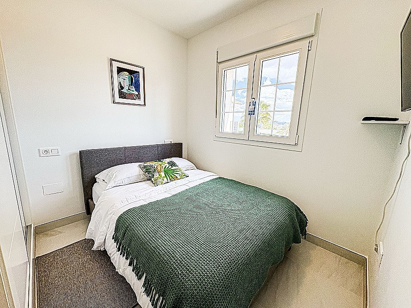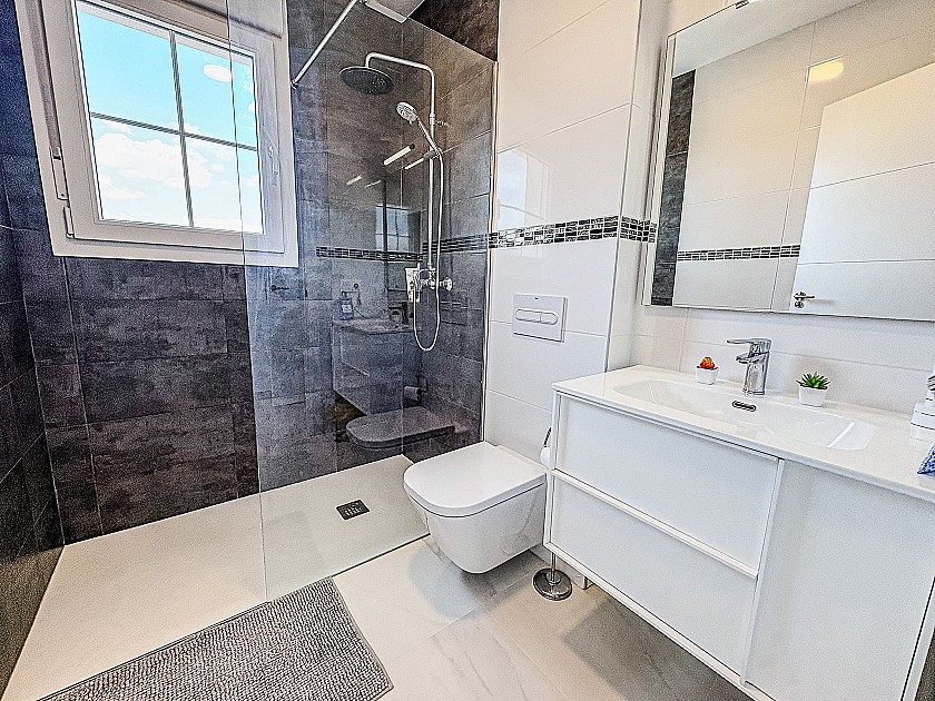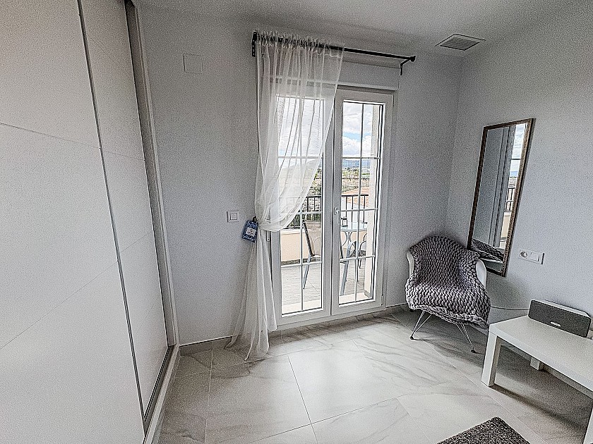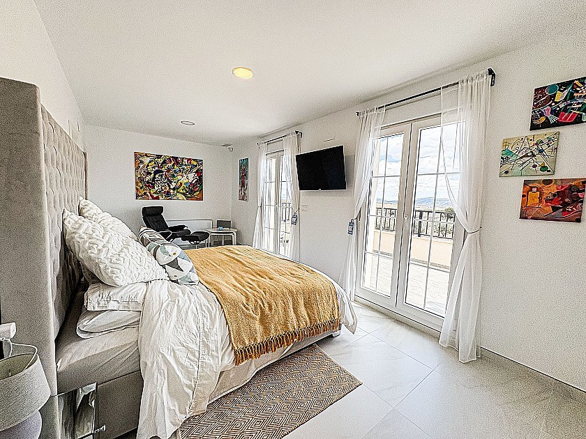 Het hoofdgebouw beschikt over drie ruime slaapkamers met eigen badkamers, allemaal voorzien van ingebouwde kasten. De master suite heeft zelfs een inloopkast en een privéterras, waar je elke ochtend kunt genieten van een adembenemend uitzicht op de bergen.