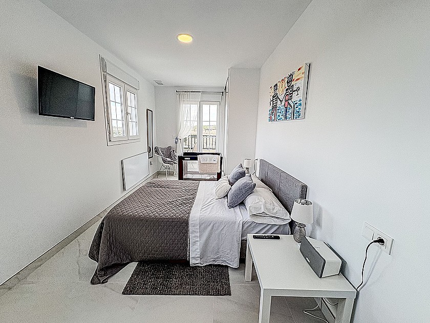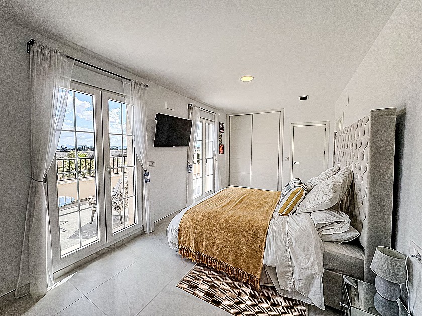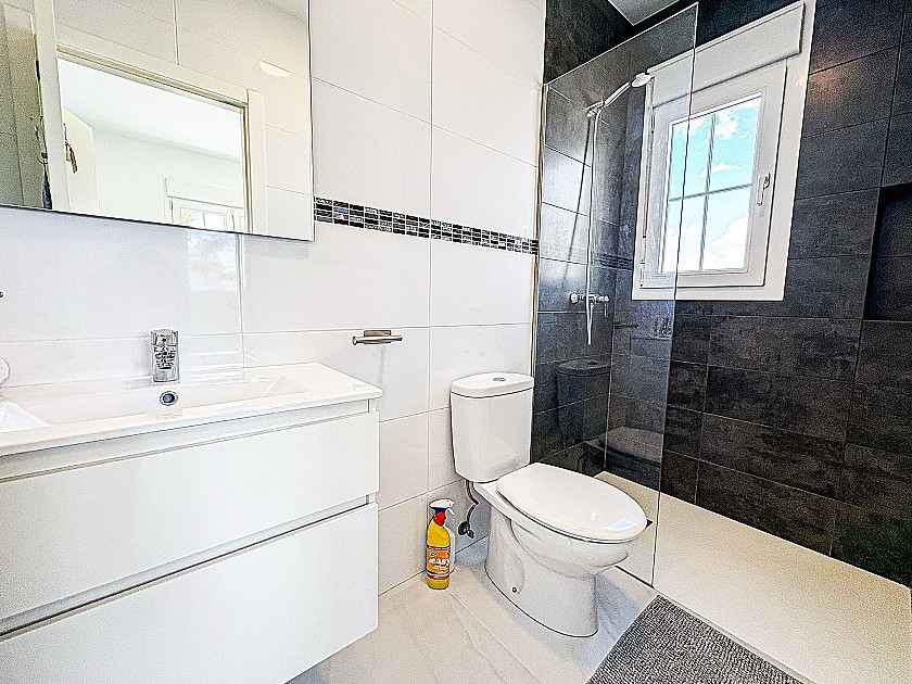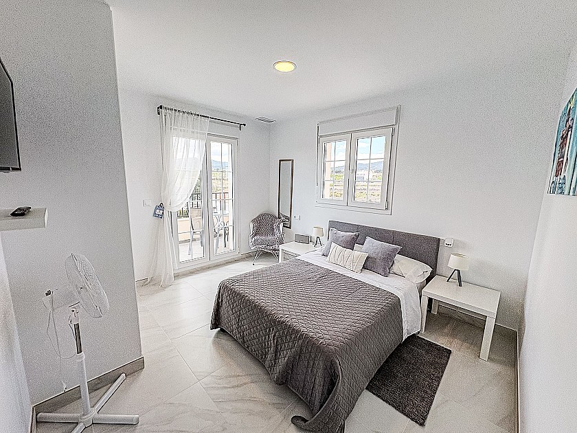 Het hoofdgebouw beschikt over drie ruime slaapkamers met eigen badkamers, allemaal voorzien van ingebouwde kasten. De master suite heeft zelfs een inloopkast en een privéterras, waar je elke ochtend kunt genieten van een adembenemend uitzicht op de bergen.