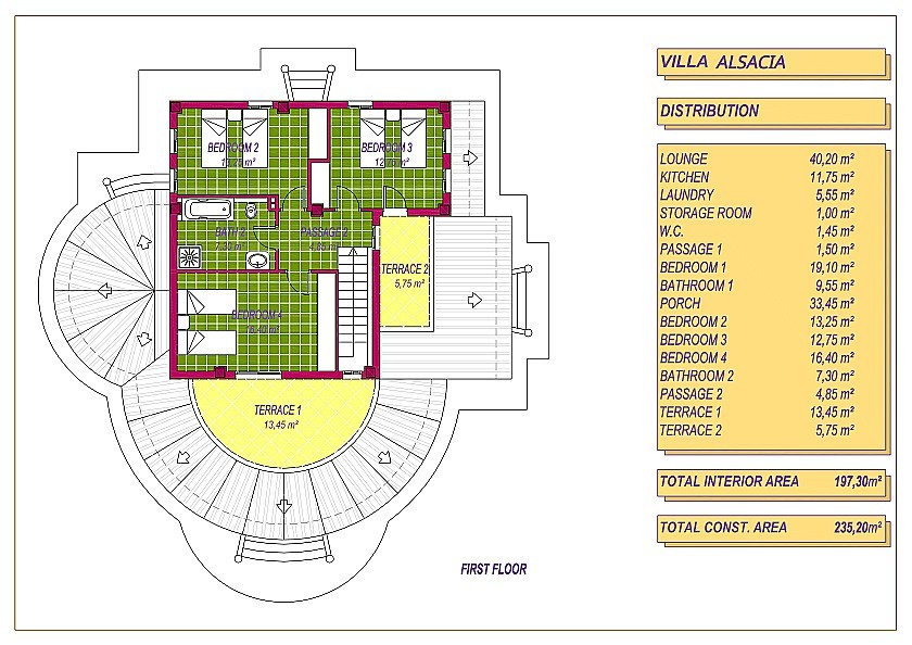 2.- COATINGS EN AFWERKINGEN. 2.1.- ALGEMENE VLOERBEKLEDING VAN HET HUIS Er is een keuze uit topkwaliteit porseleinen steengoedvloeren in een grote verscheidenheid aan kleuren, tot 20€/m2. 2.2- VERF EN AFWERKINGEN De muren worden geverfd met topkwaliteit gladde kunststofverf in een keuze uit verschillende neutrale tinten.