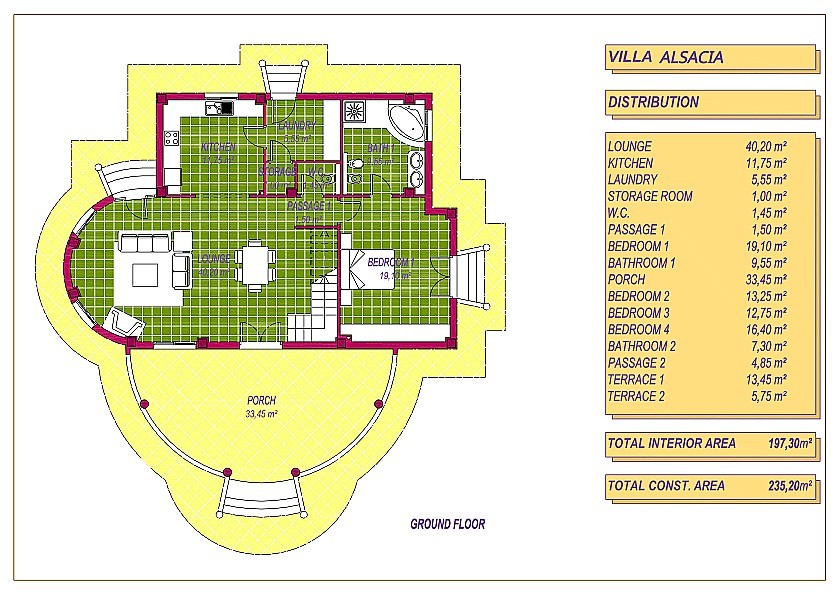 2.4- INTERIEURVERDELINGEN De binnenverdeling van de villa wordt gedaan met keramische scheidingswanden of gelamineerde gipsplaten. In natte ruimtes moeten de gipsplaatpanelen waterbestendig zijn.