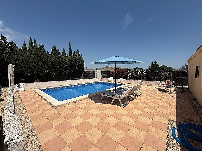 Met trots presenteren wij u deze charmante villa met 4 slaapkamers in Villena, met uitzicht, een prachtige tuin en een zwembad.