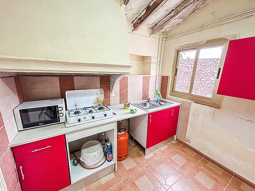 - Woon-eetkamer met open haard, perfect voor winteravonden, verbonden met een traditionele gaskookkeuken in rustieke stijl