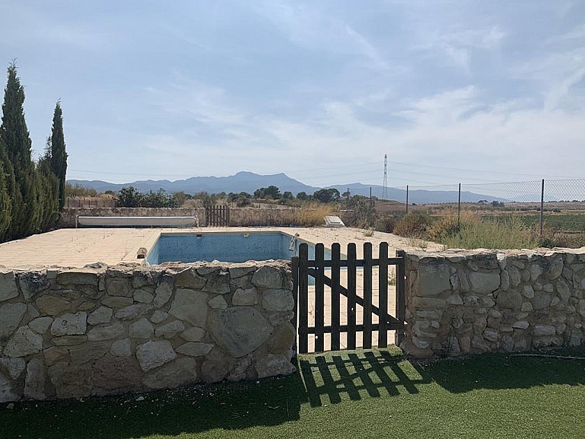 Het land is 4.179m² groot en moet nog worden aangelegd. Er is een groot zwembad en een garage/werkplaats.