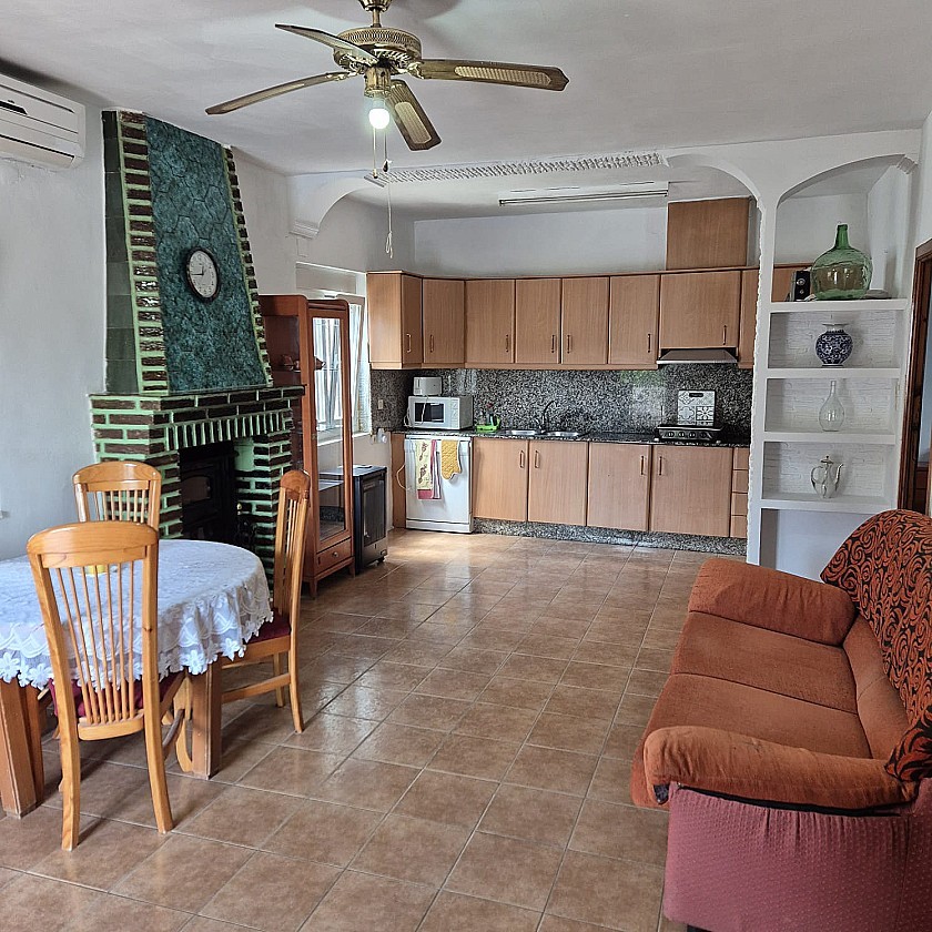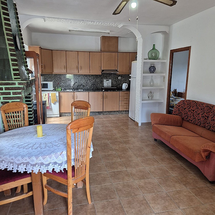 Het huis heeft een ruime woon-/eetkamer met open keuken, voorzien van een grote open haard en airconditioning. Vanuit de woonkamer heeft u twee tweepersoonsslaapkamers en een kleine hal leidt naar de familiebadkamer met douche en de derde tweepersoonsslaapkamer.